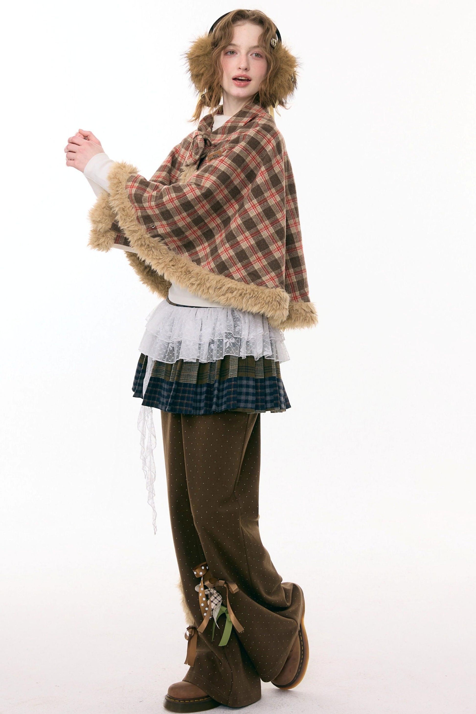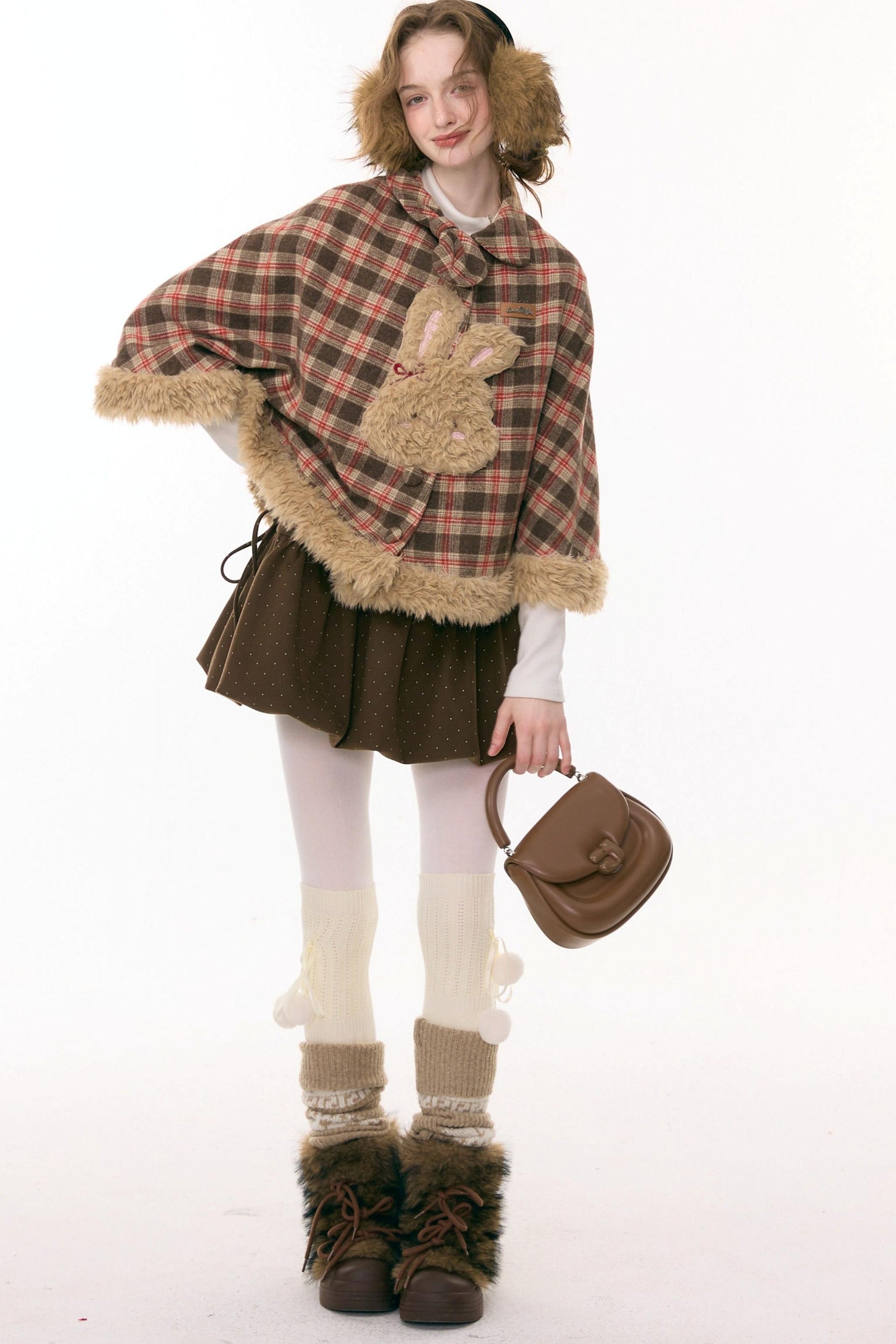 Fairy Tale Plaid Rabbit Cape Coat