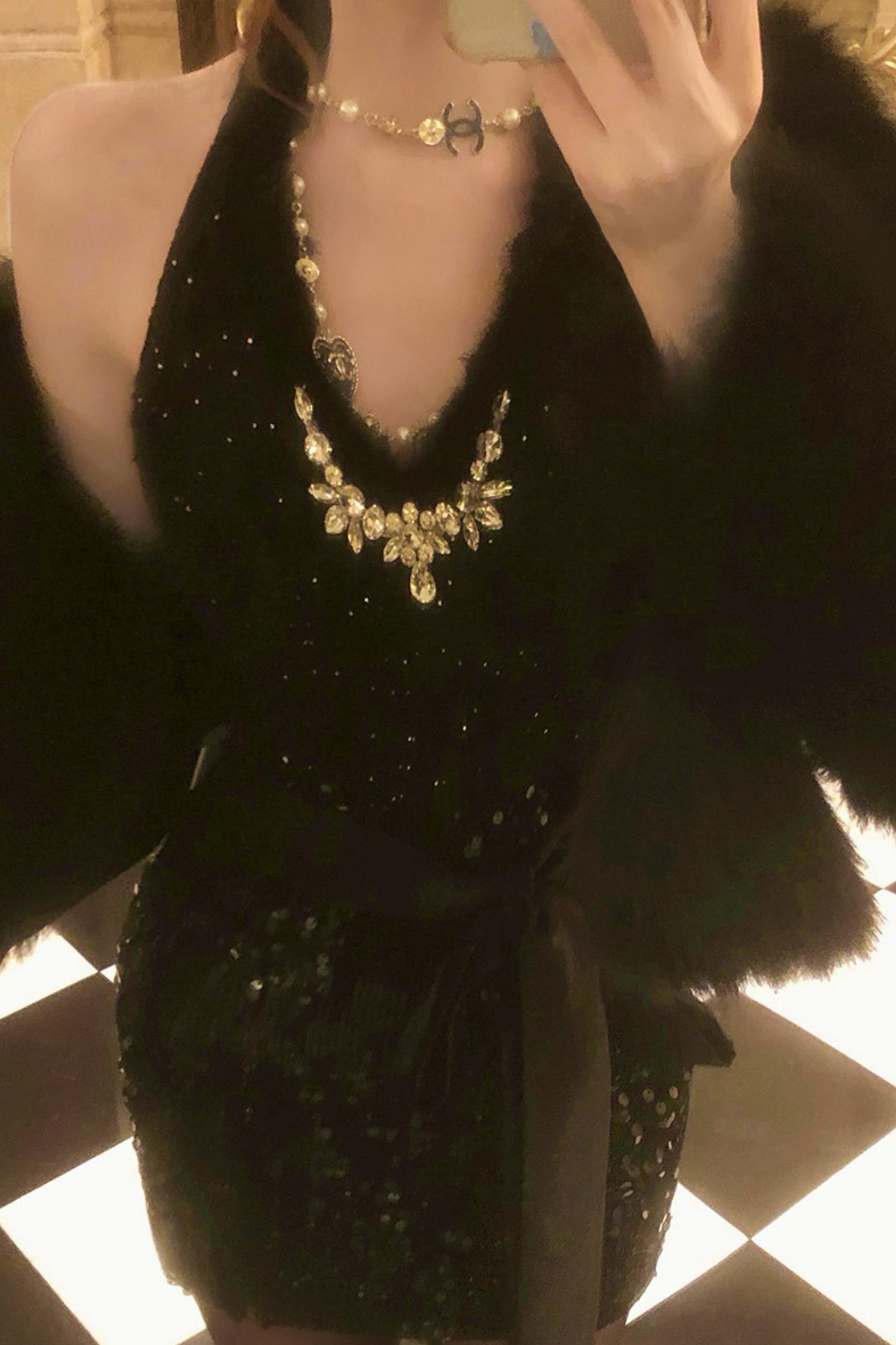French mode tight dress + fur coat