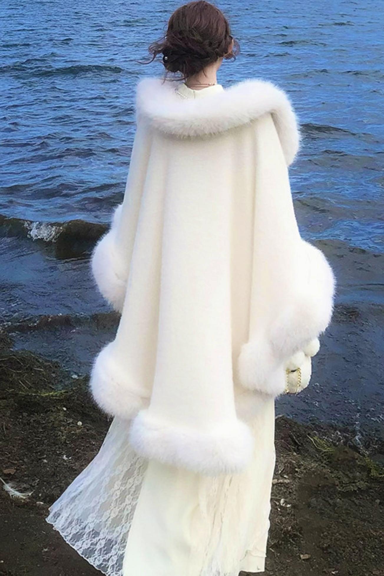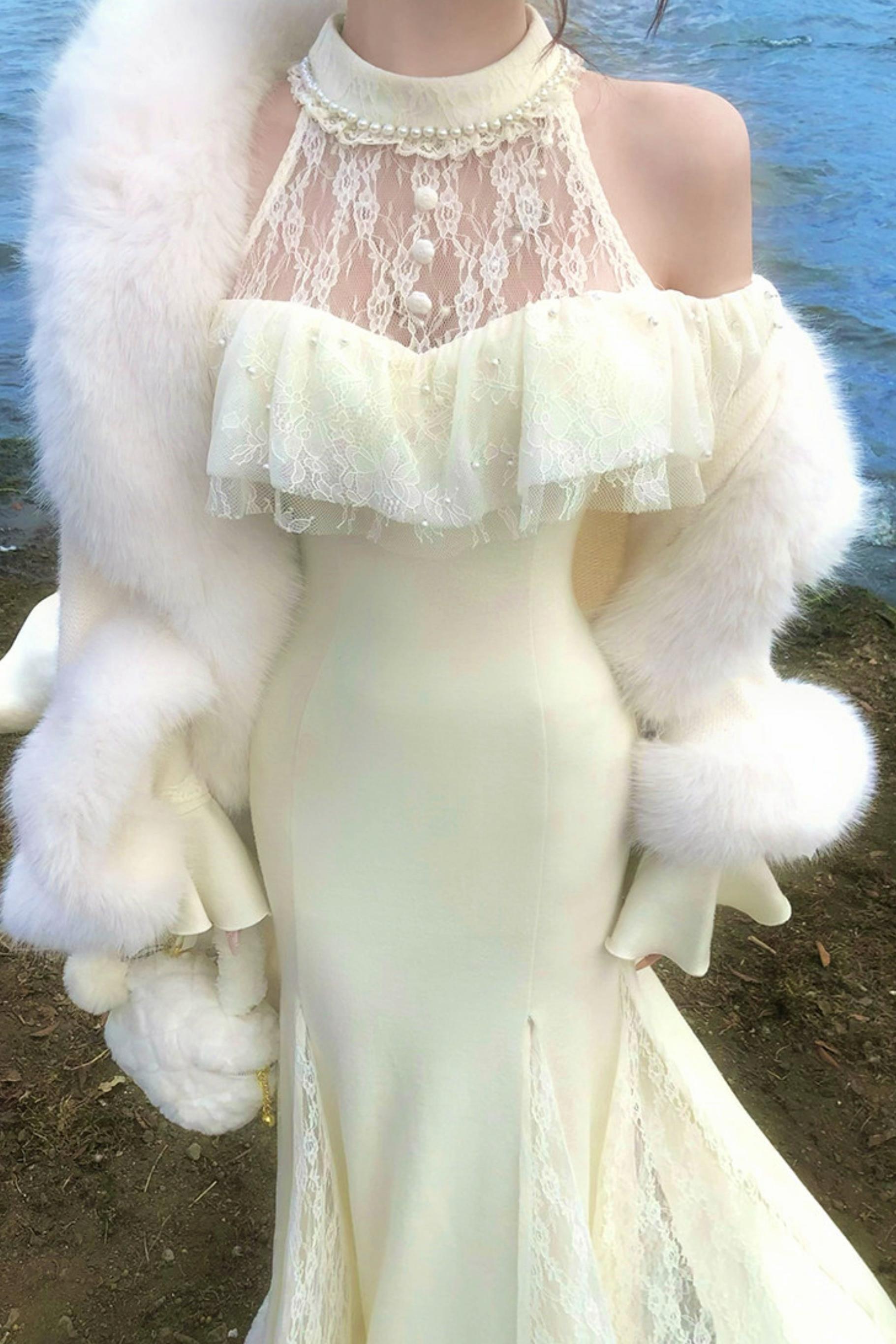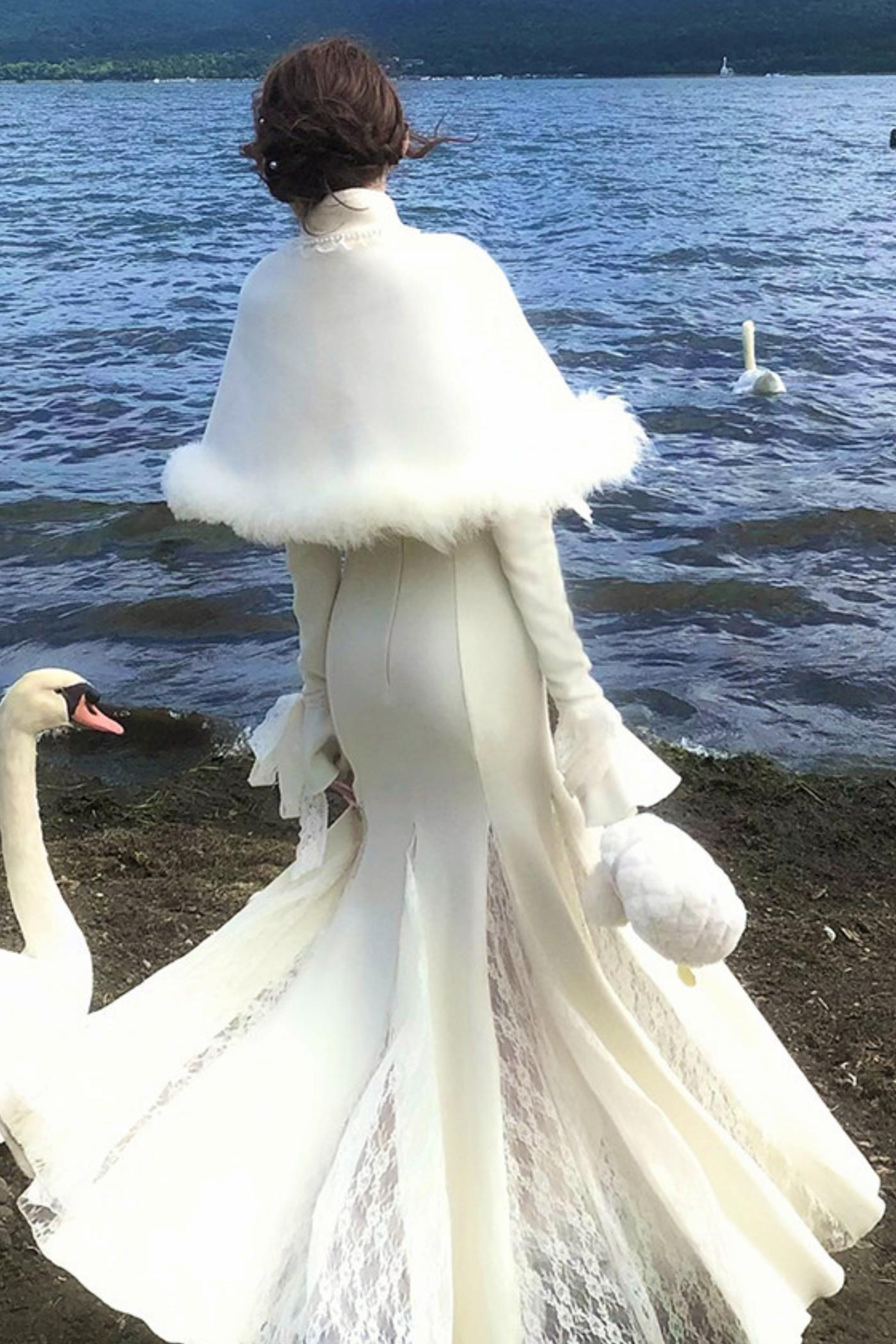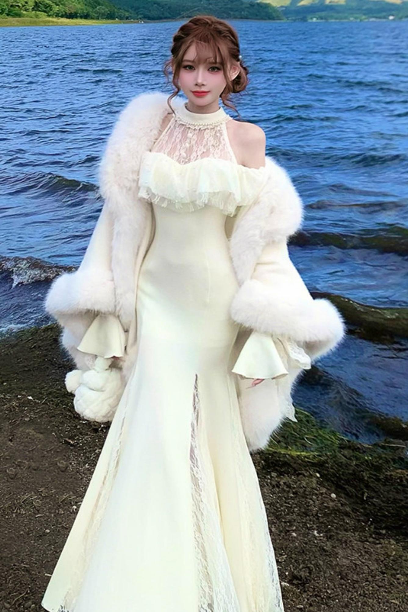 ❤French Lace Waist Slimming Dress + Soft White Longline Cloak ❤