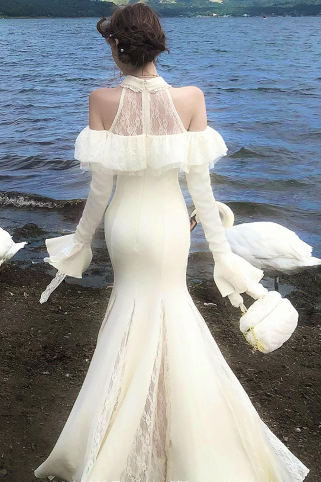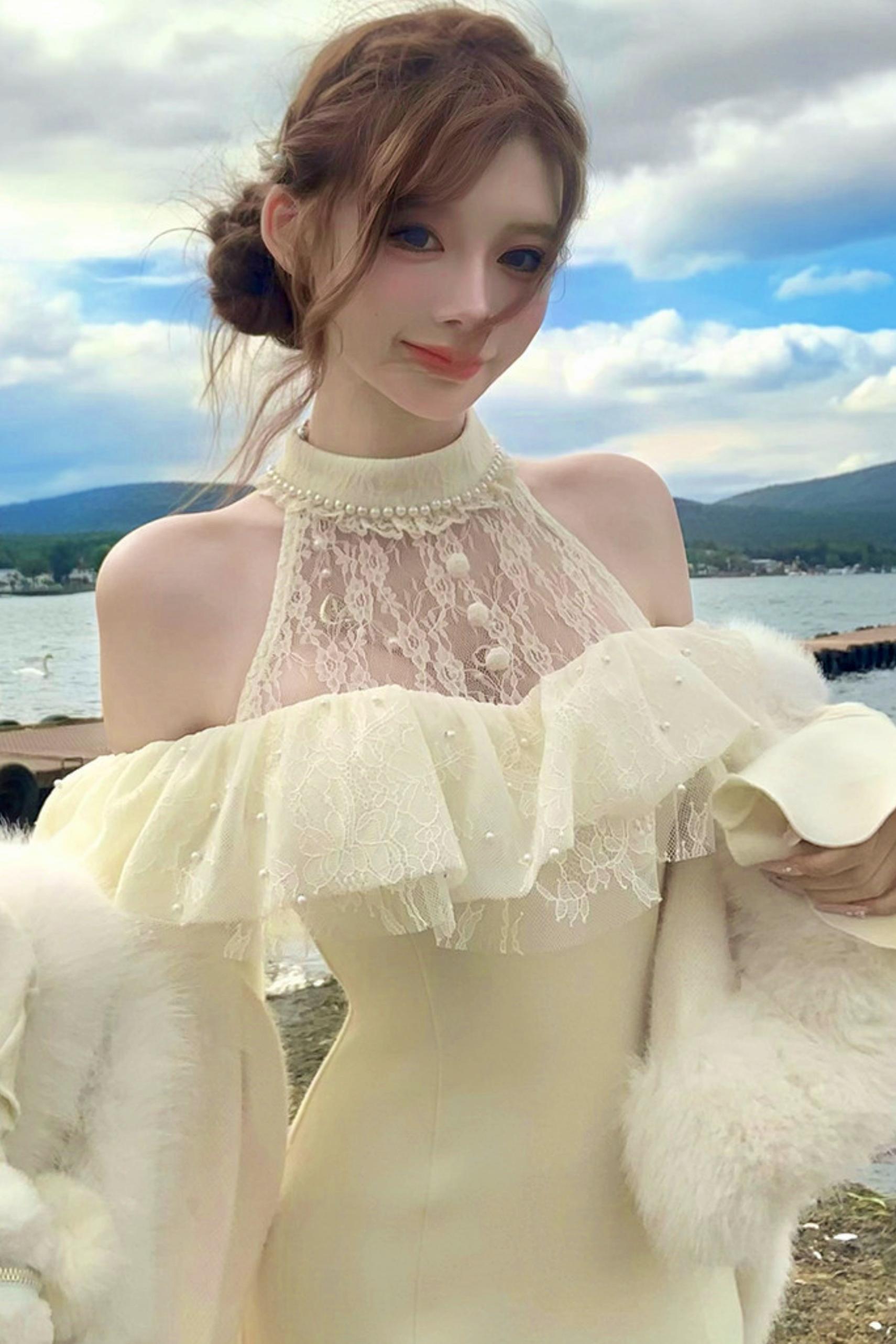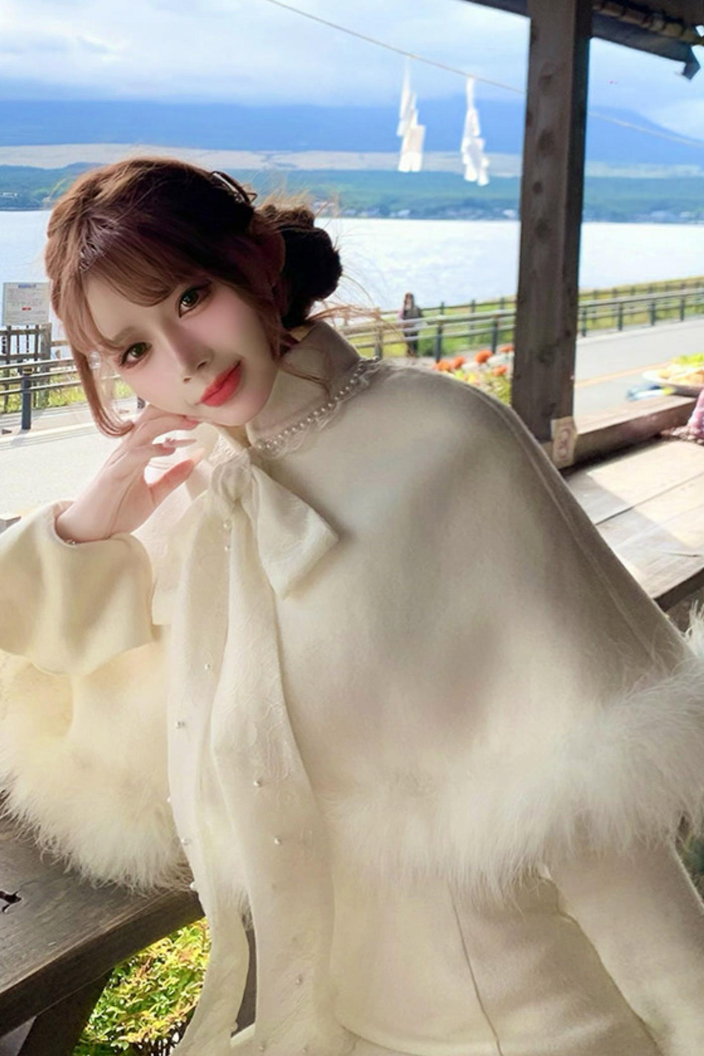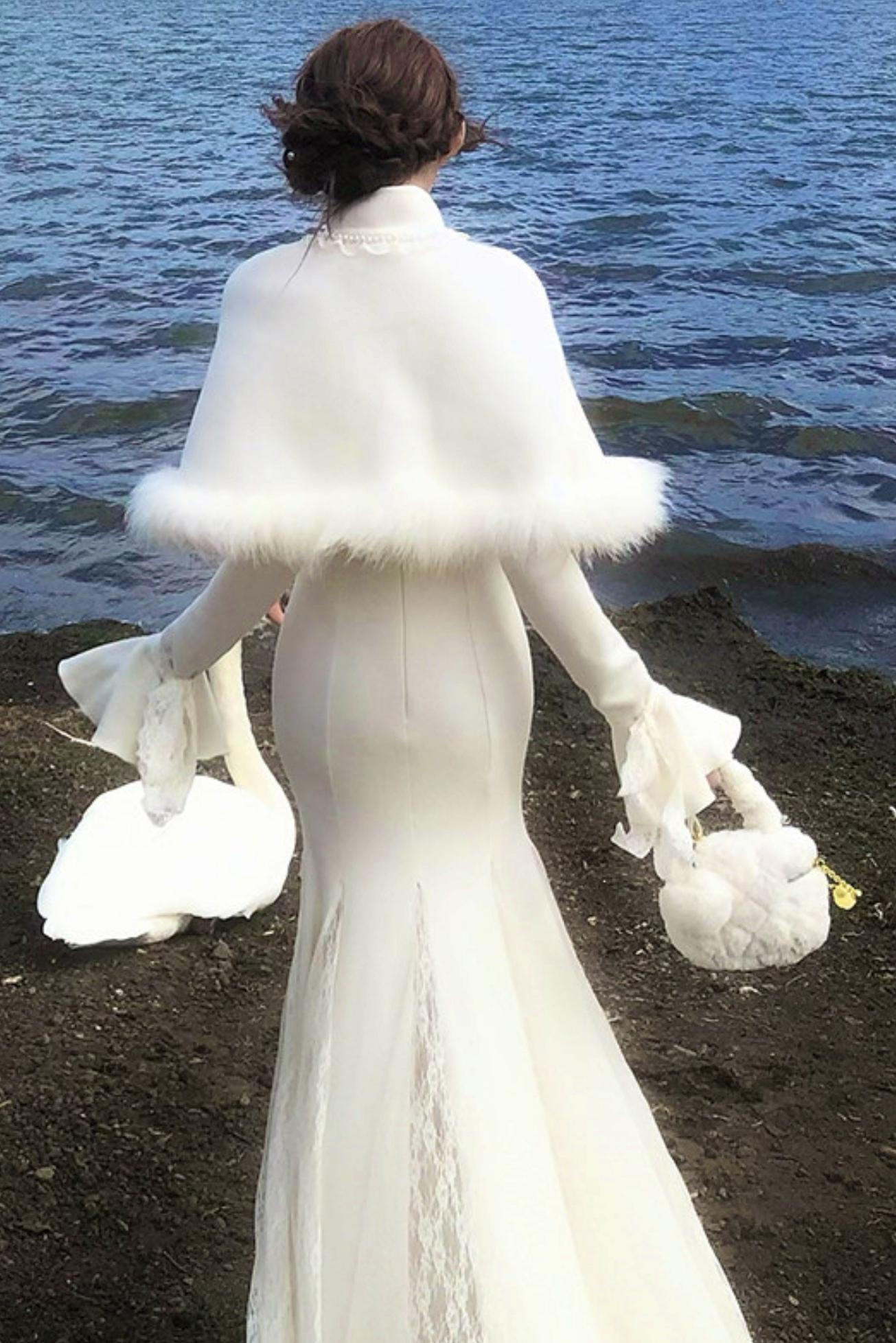 ❤French Lace Waist Slimming Dress + Soft White Longline Cloak ❤