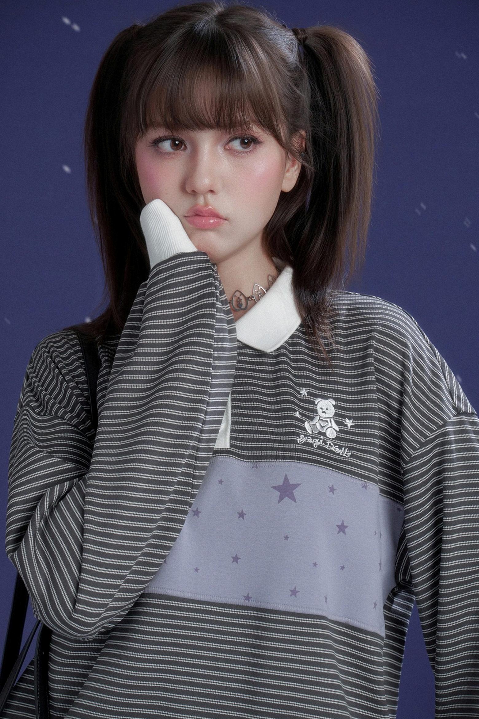 ❤Gray and Purple Striped Polo Top❤