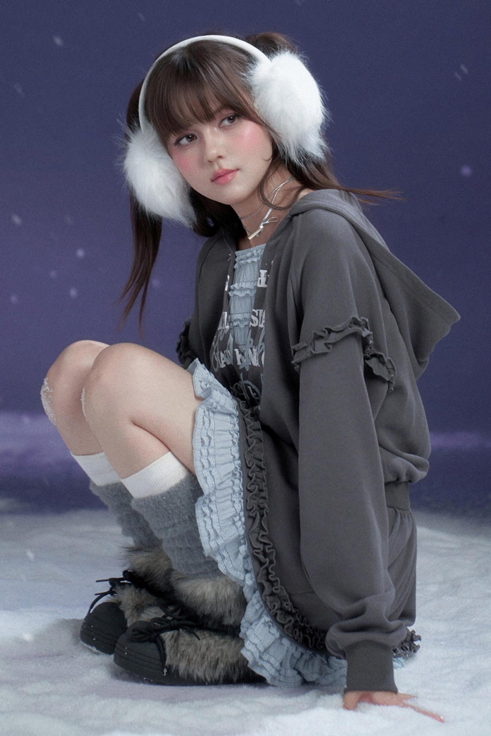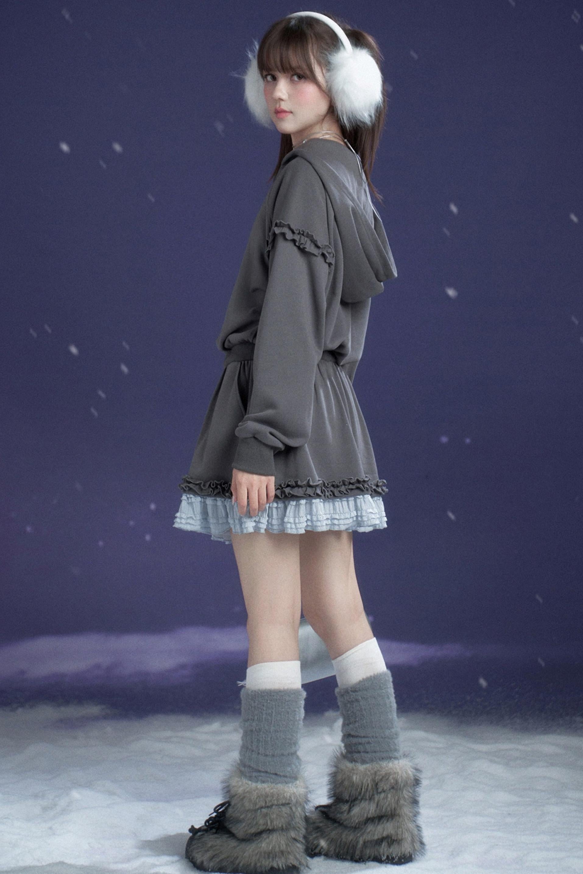 ❤Gray-Blue Lace Hooded Dress❤