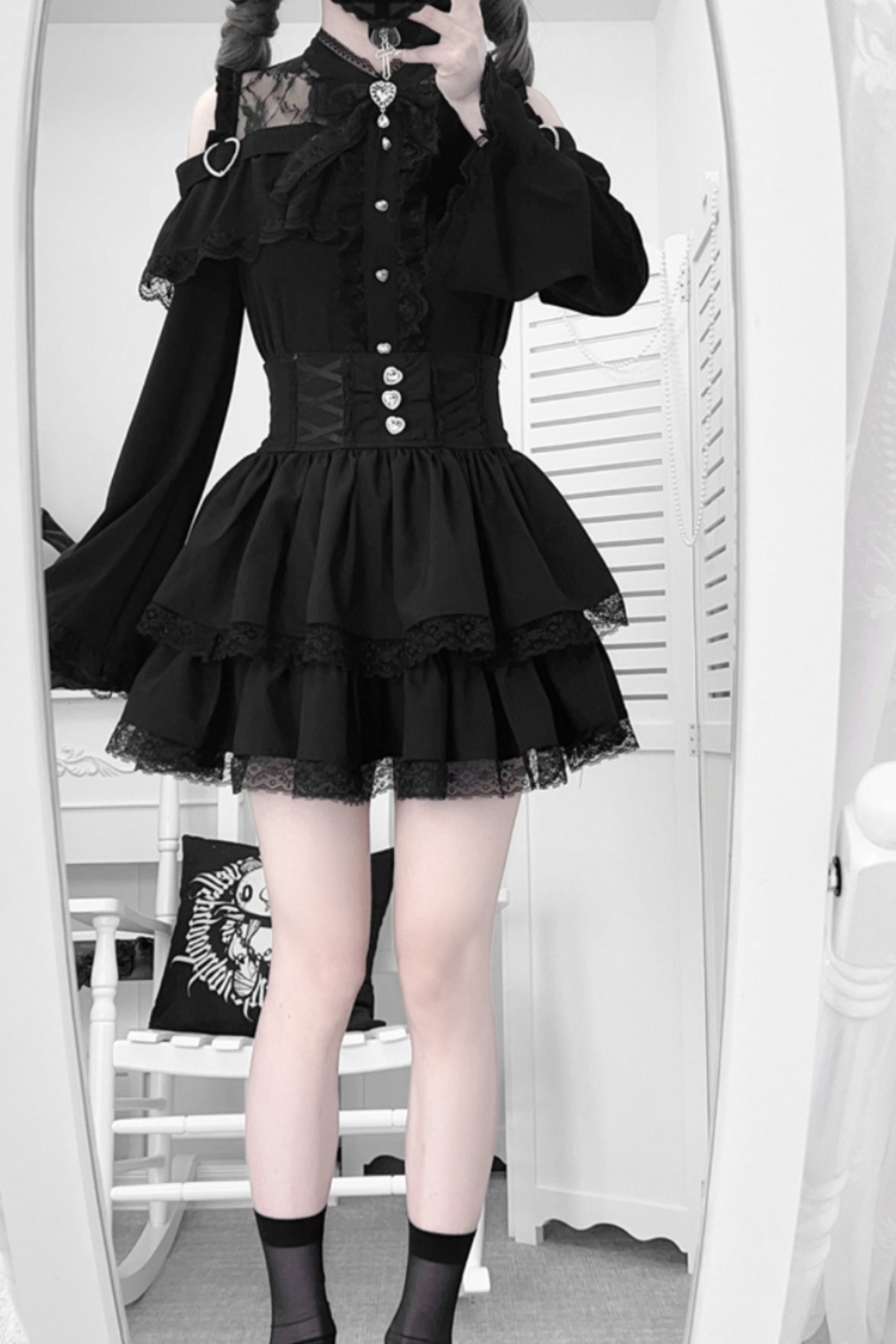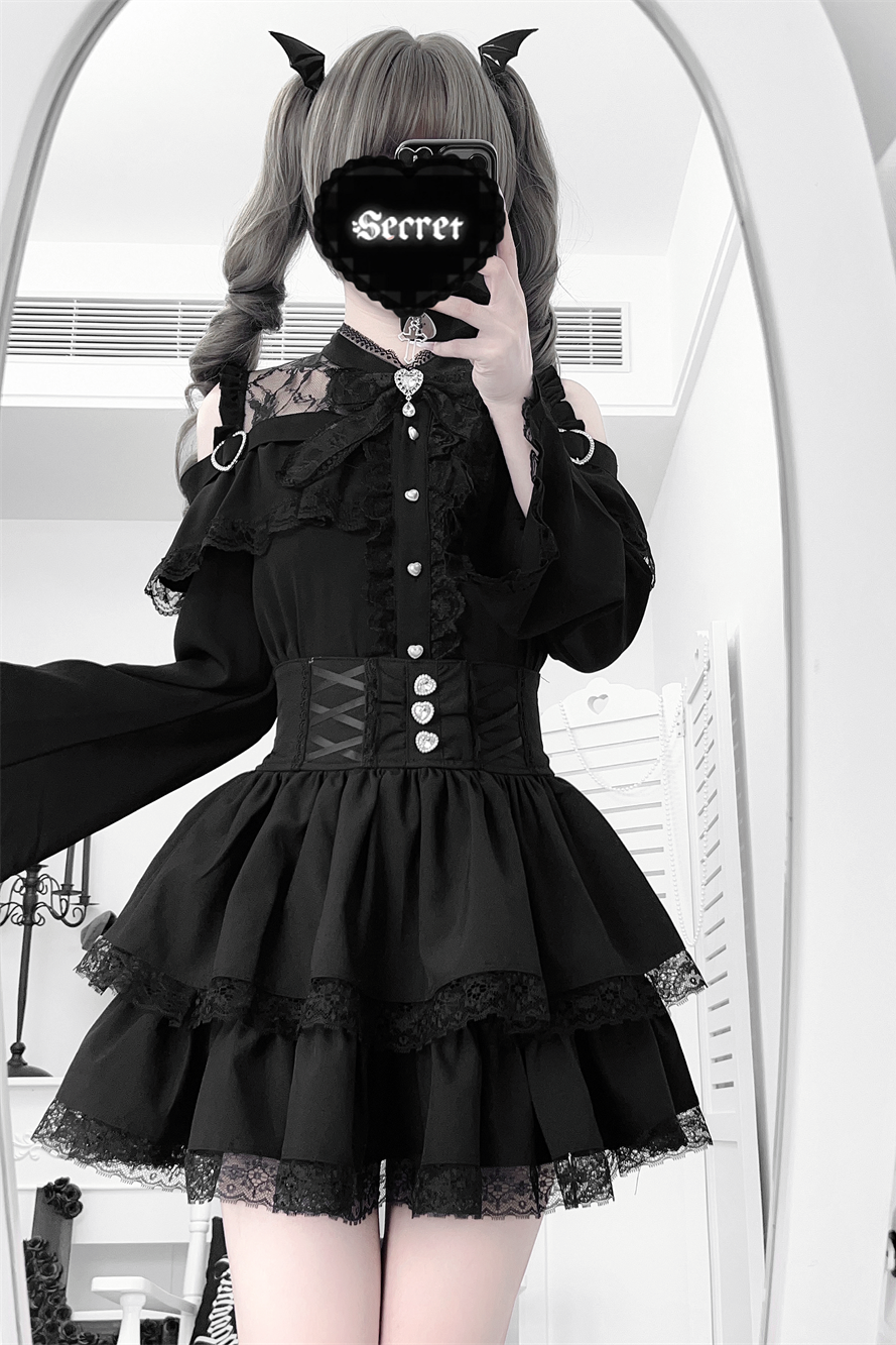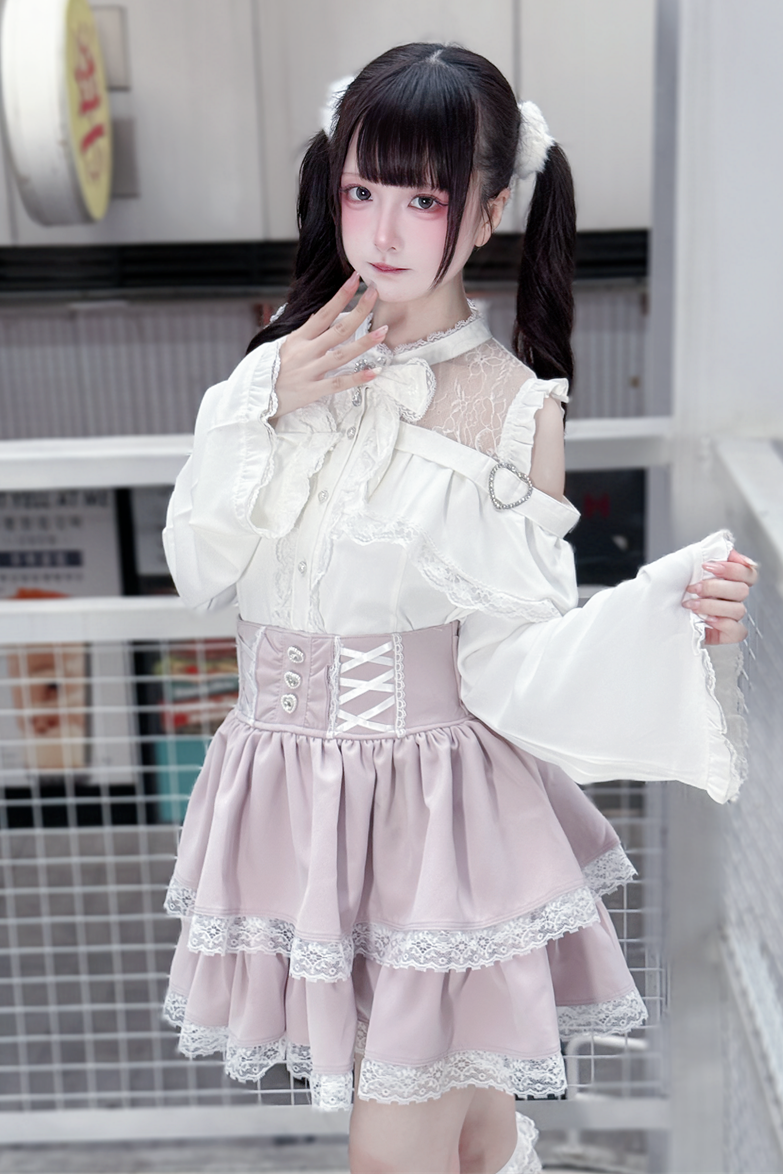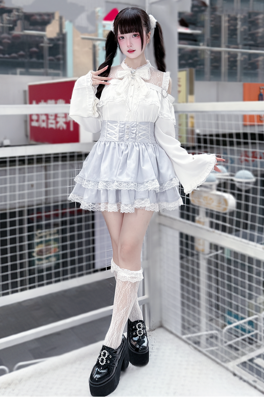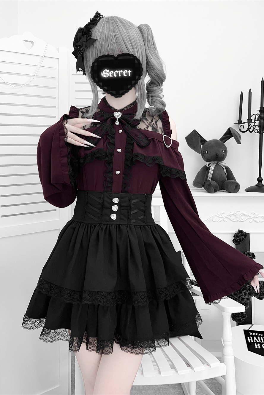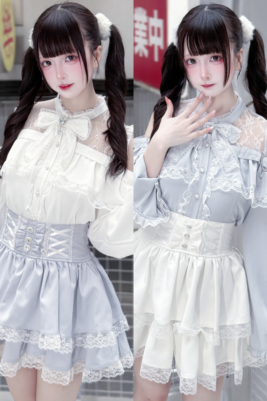Lace off-the-shoulder shirt + lace-up skirt