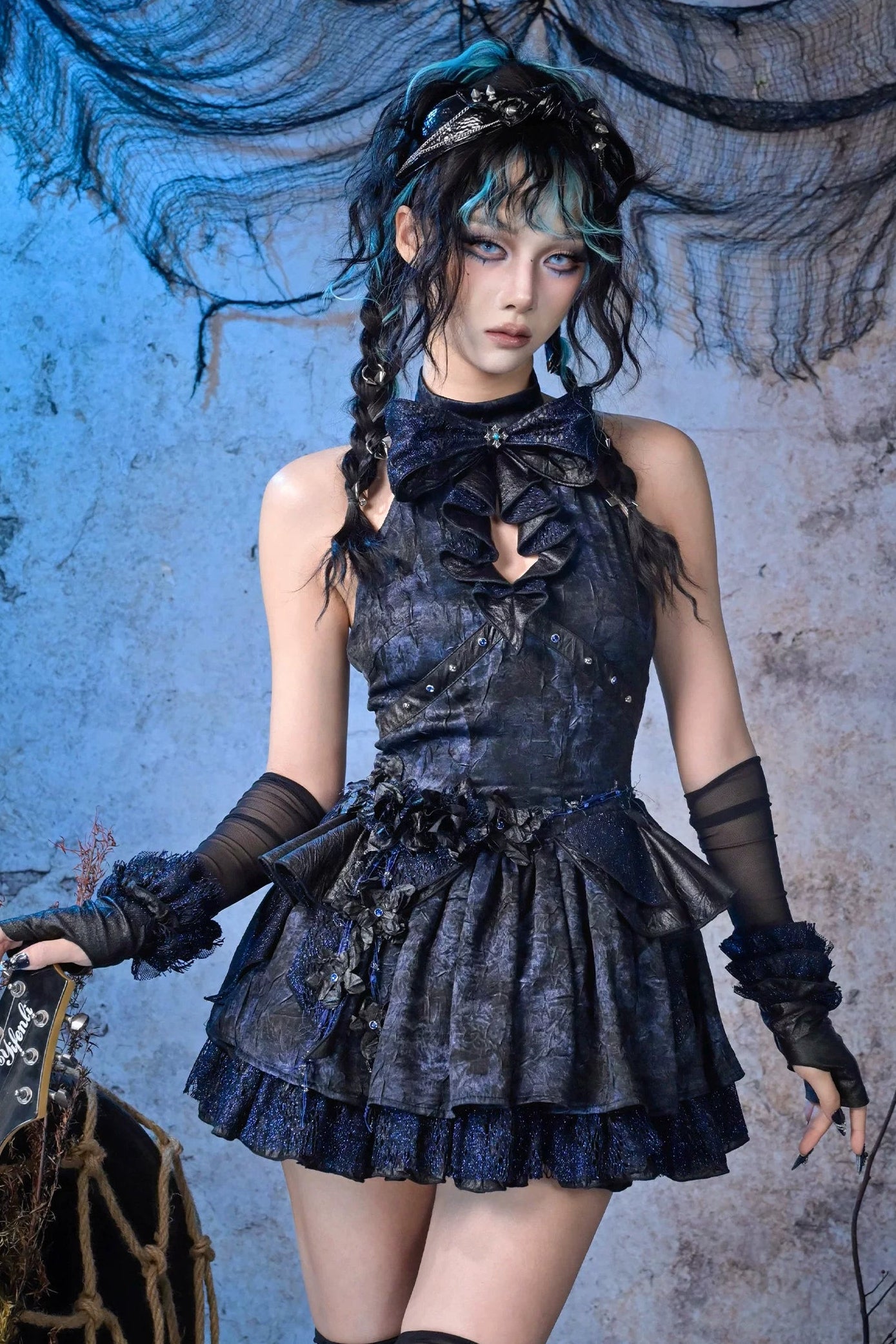 Lace Punk Halter Dress + Accessories