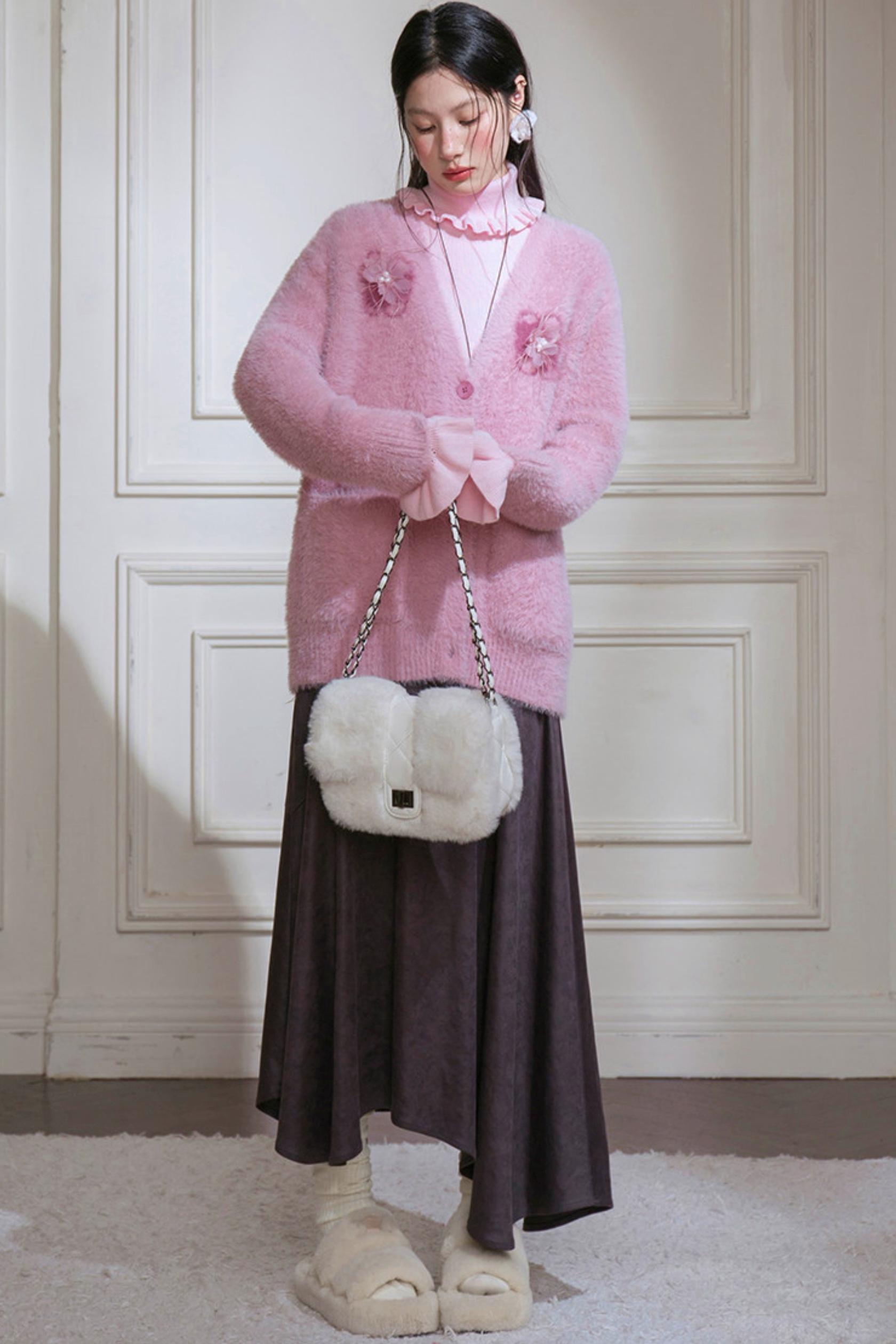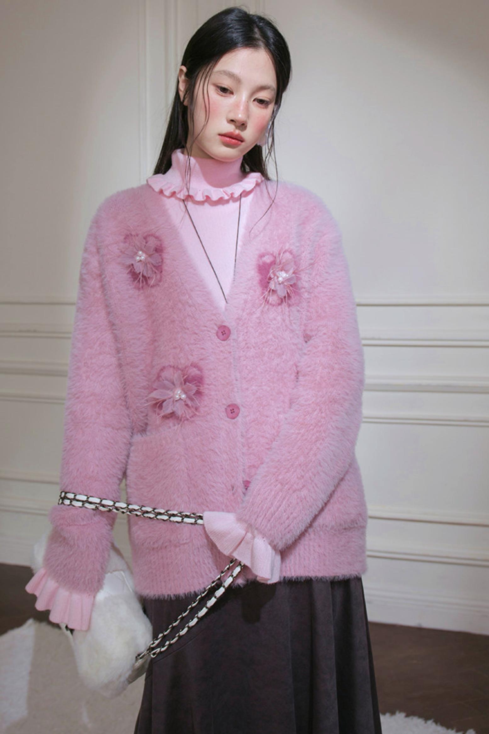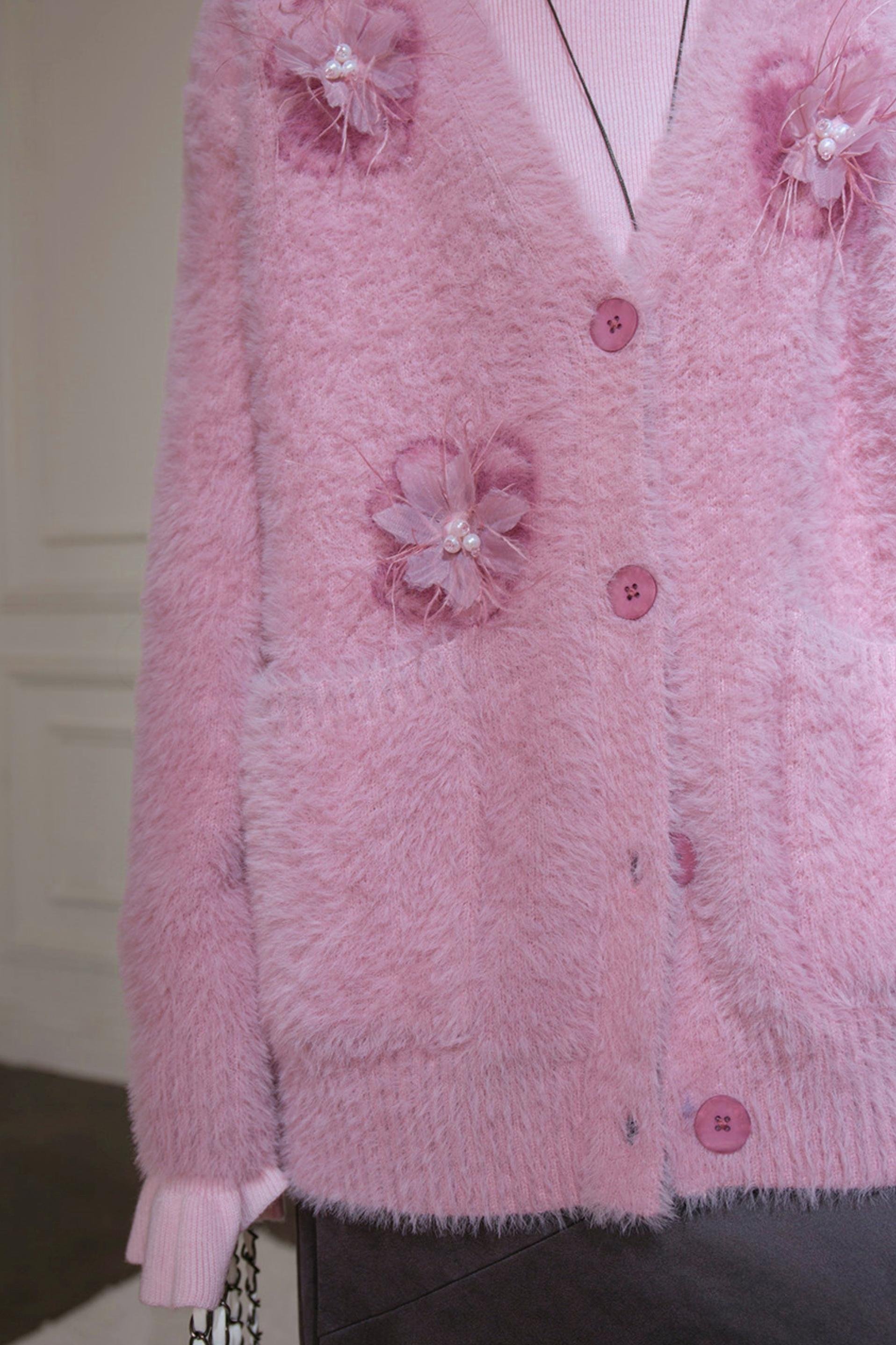 Pink Feather Floral Cardigan
