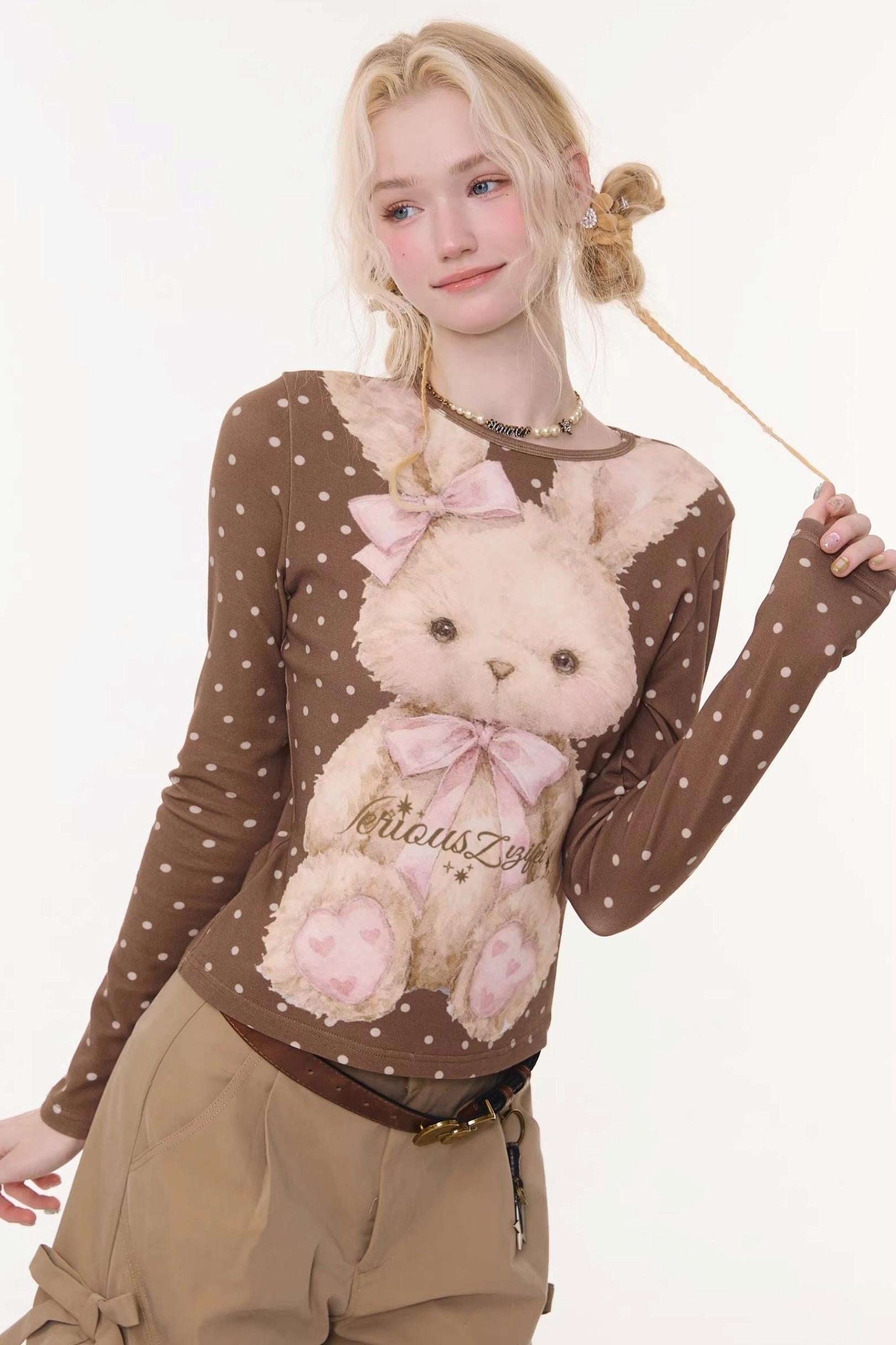 ❤Polka Dot Rabbit Print Top❤