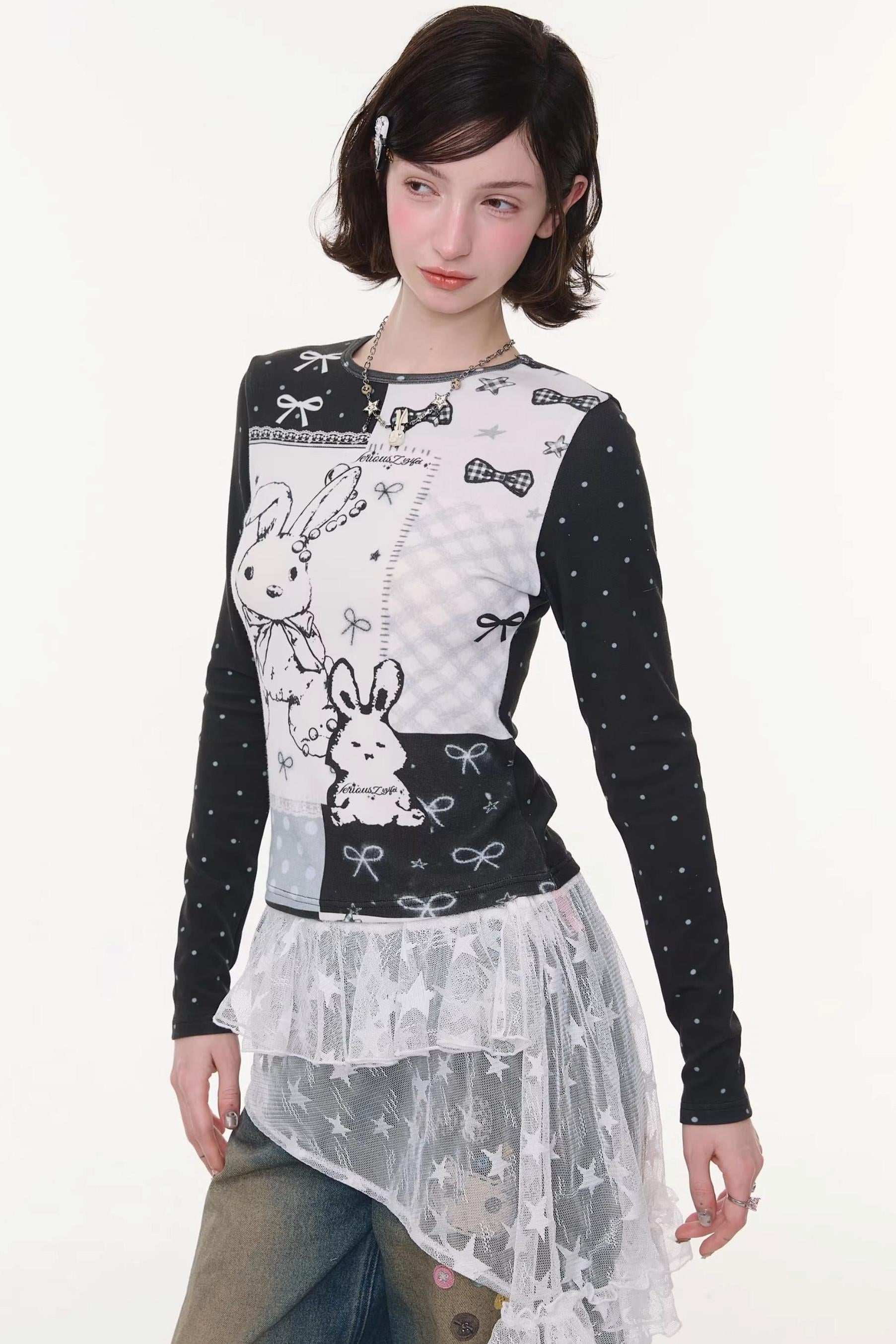 Rabbit Print Contrast Blouse