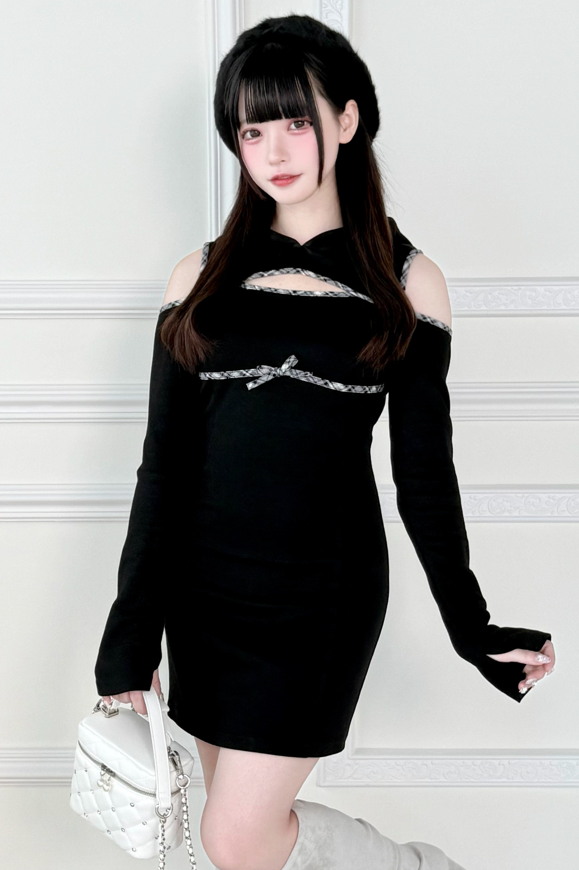❤Off Shoulder Little Ribbon Hooded Dress ❤