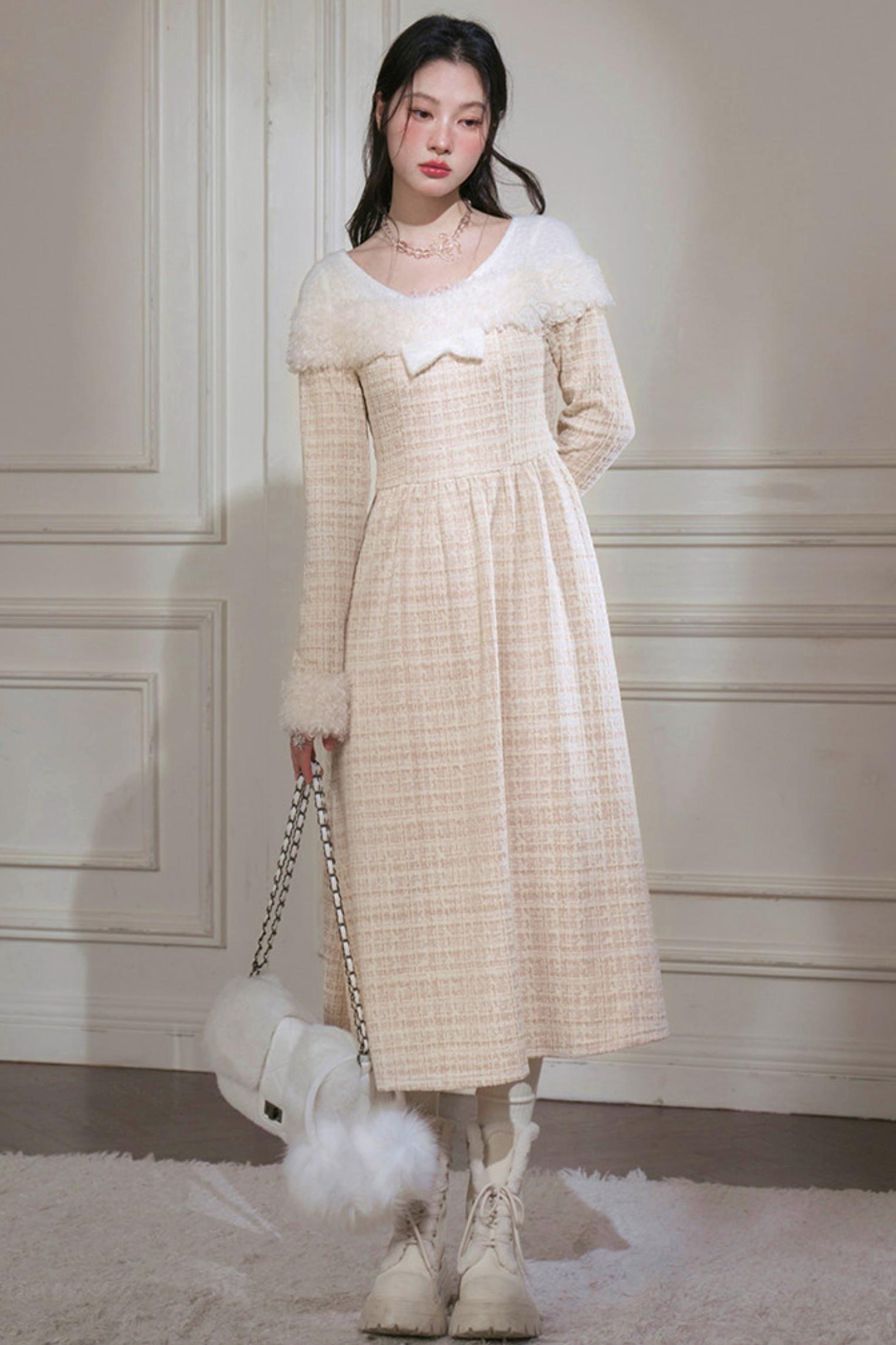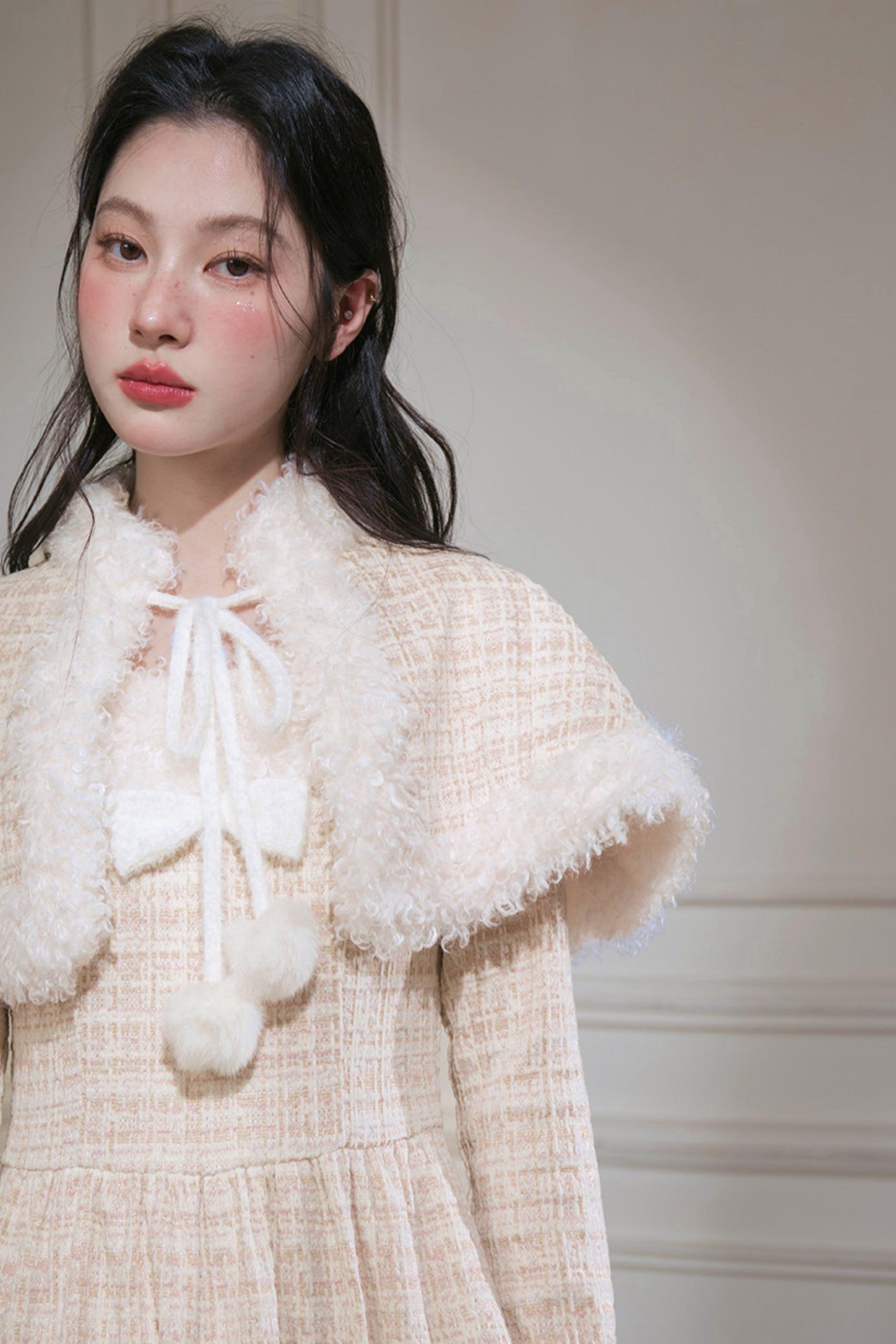 Vanilla Velvet Cape Dress