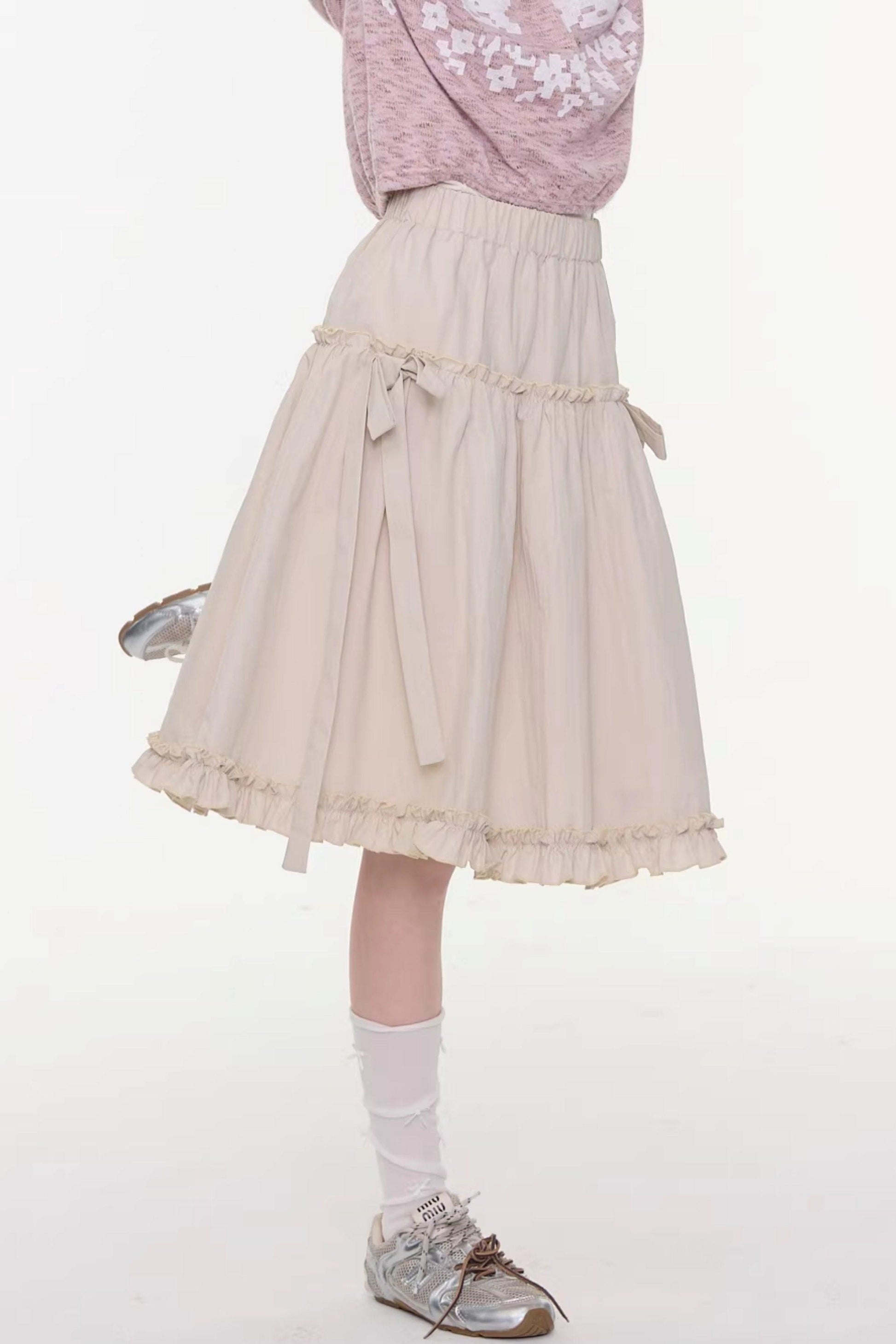 ❤Vintage Bow Knot Khaki Midi Skirt❤