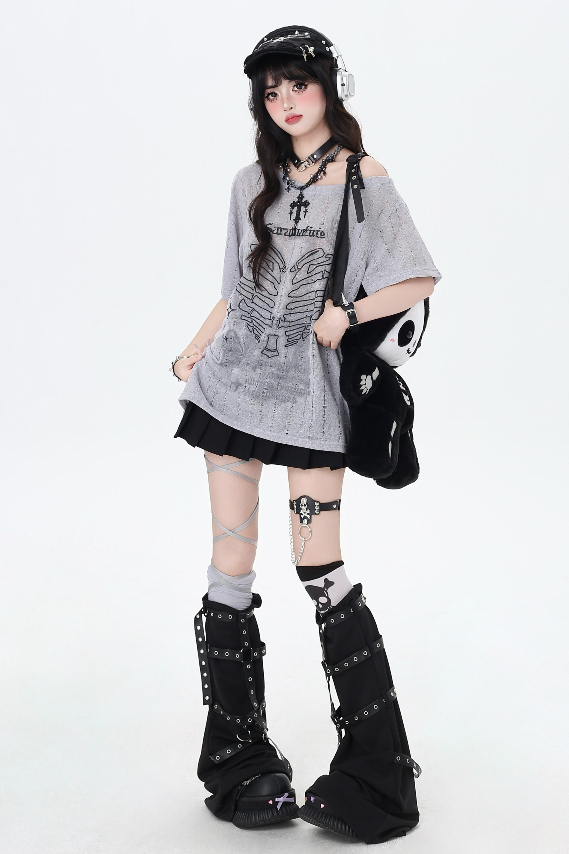 Skull Heart Strapless Top