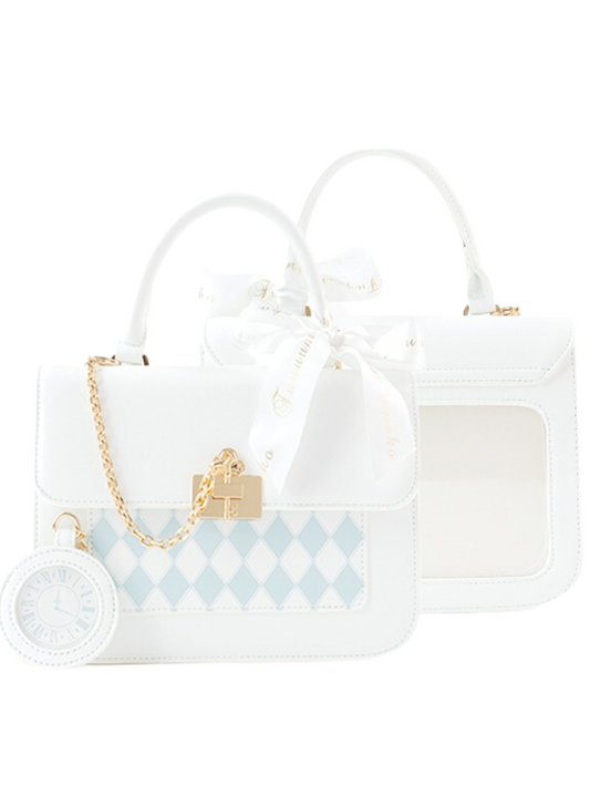 Heart Charm Ribbon Bag [With Short & Pearl Long Strap]