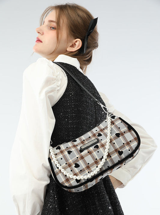 American Lettuce Eat Cool Love Check Pearl Handle Shoulder Bag