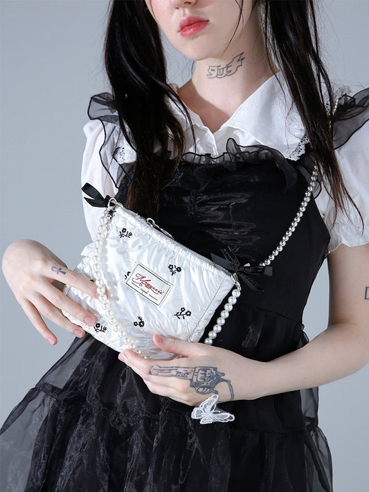 Sweet Fairy Embro Flower Pearl Strap Mini Shoulder Bag