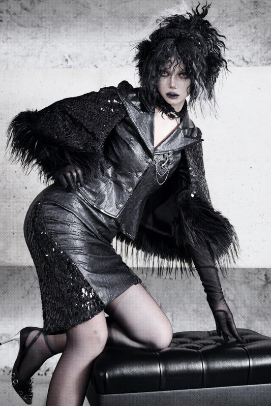 [Reservation product] Black Mist Gosix Team Punk Gauge Mat Leather Shirt + Corset Suspender Dress