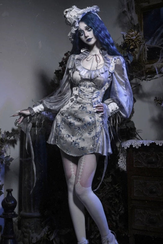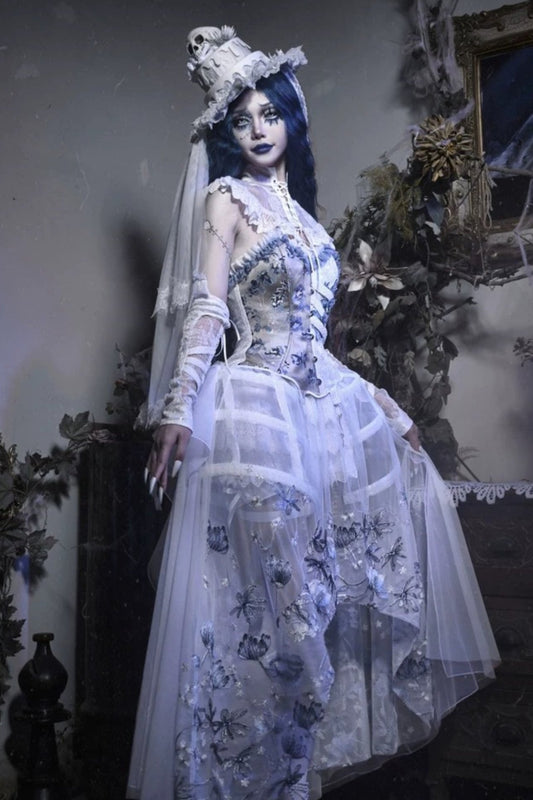 [Reservation product] Gothic Zombie Bride Jacquard Slip Dress