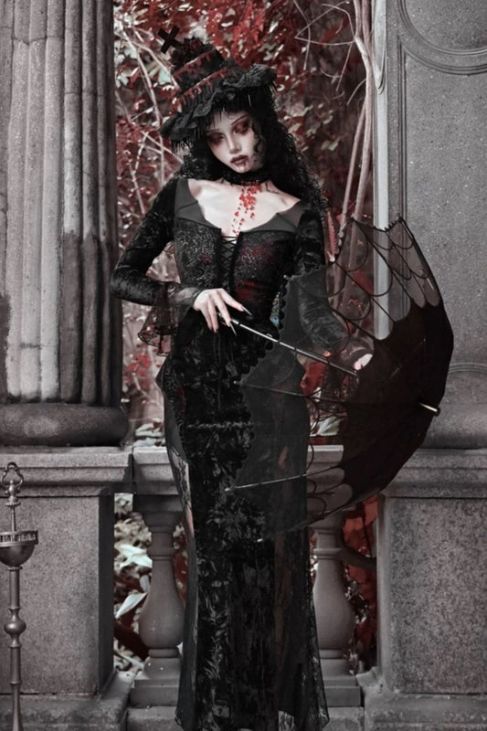 [Reservation product] Gothic Zombie Bride Hall Neck Top