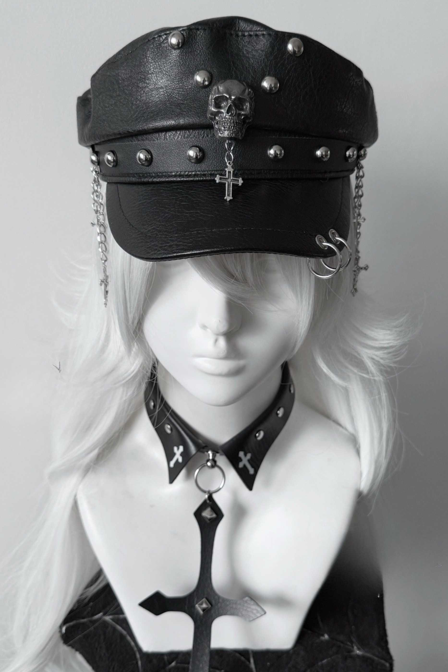 ❤Dark Rivet Y2K Leather Buckle Subculture Cap❤