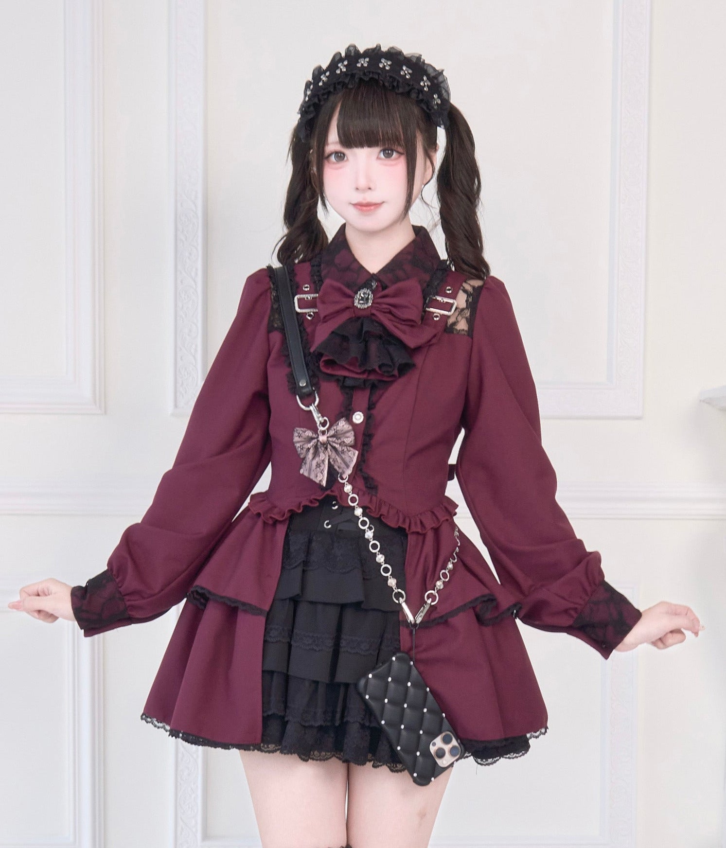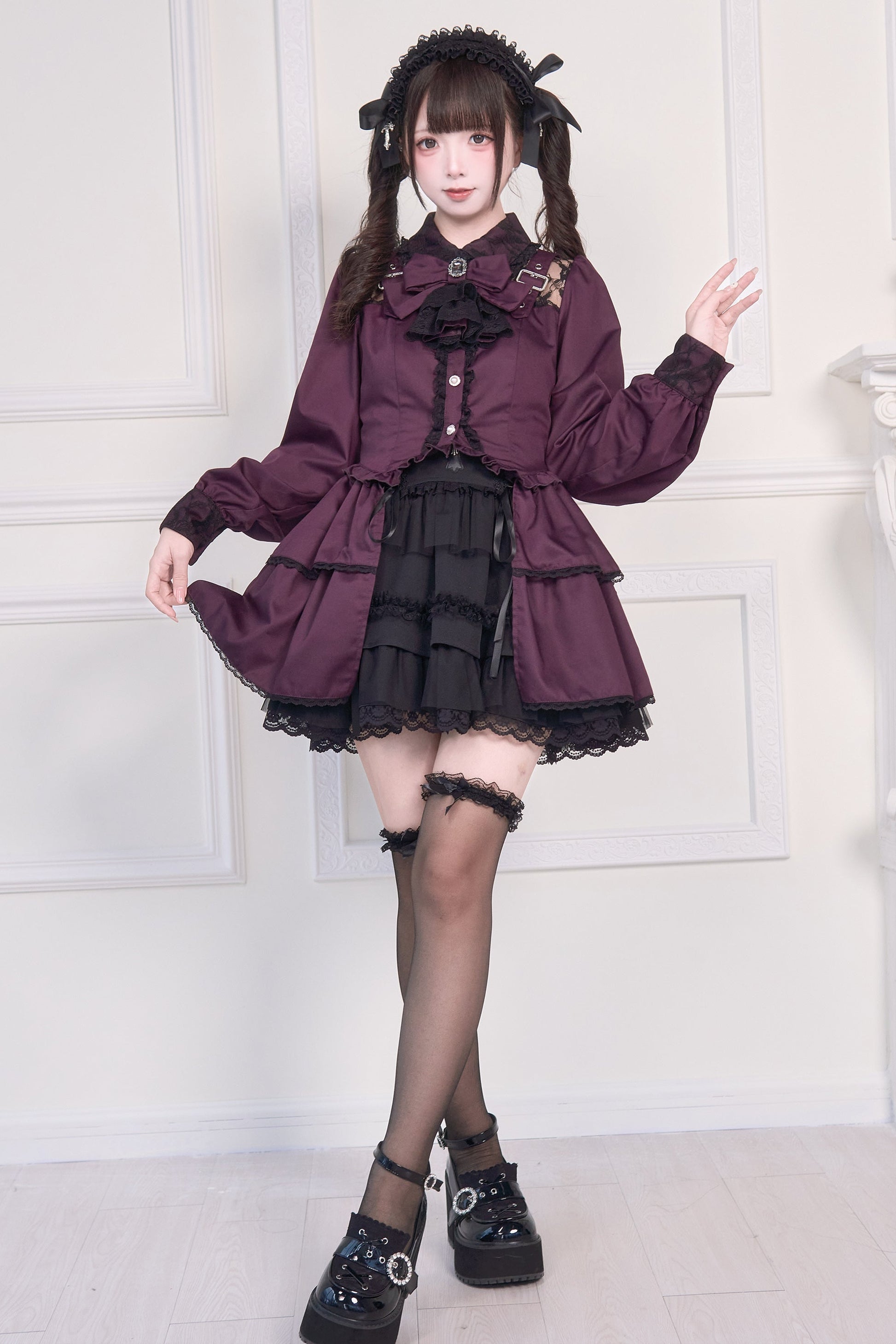 ❤︎ [Pre-order item] Lace buckle shoulder long tail light gothic ribbon shirt❤︎                                                ⚠Please note that it may take about a month to a month and a half for delivery due to the popularity of this product.