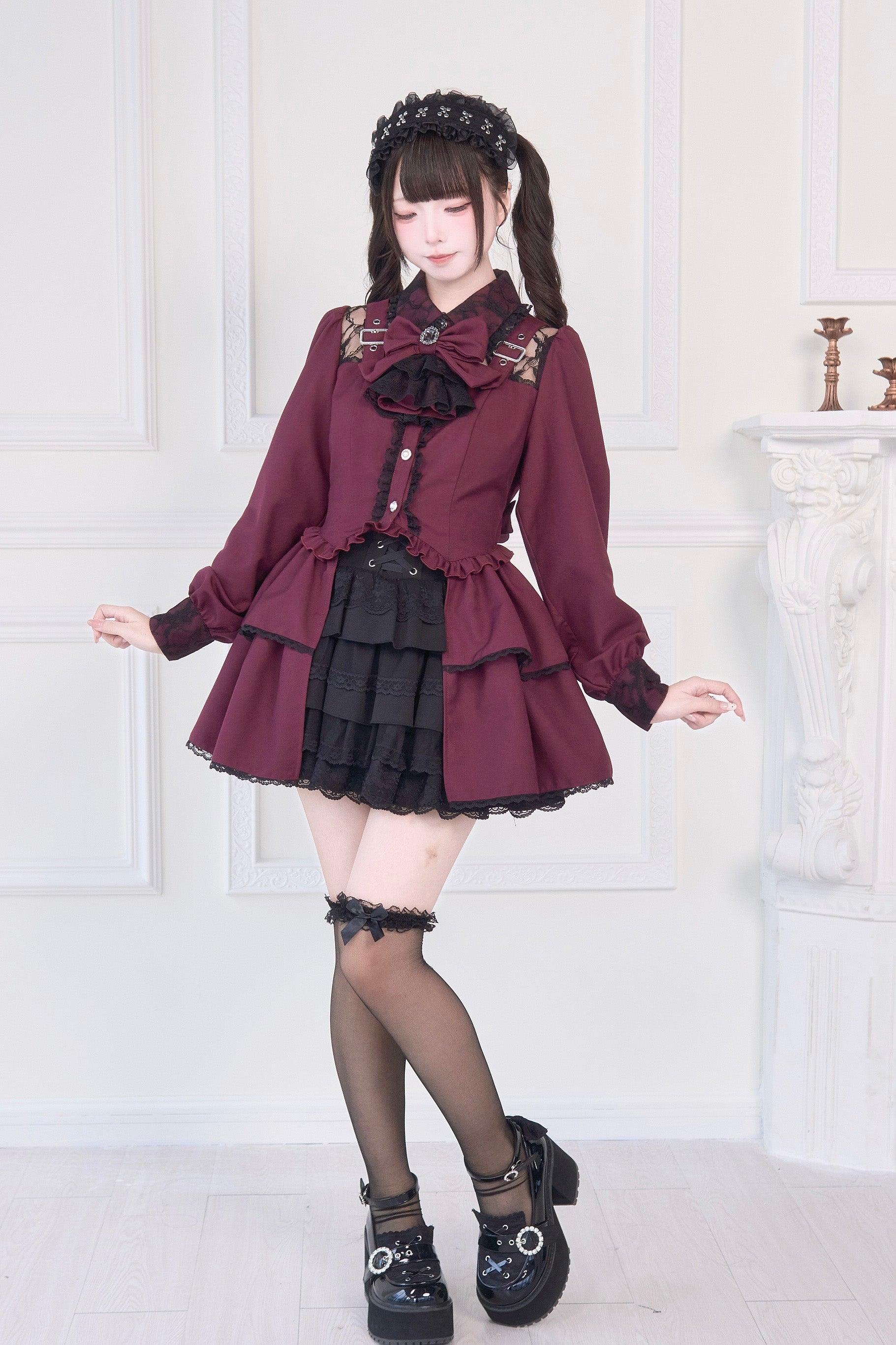 [Reservations] Lace Buckle Shoulder Long Tail Light Gothic Ribbon Shirt