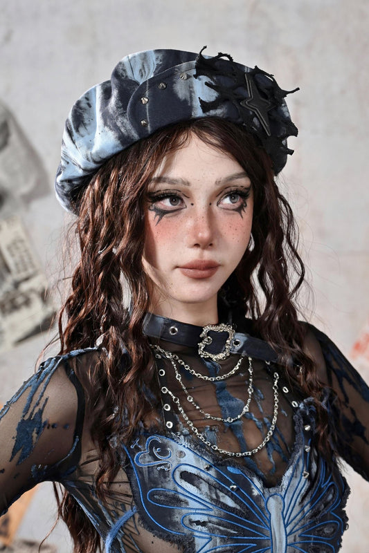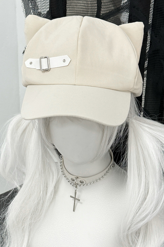 Dark Riveted Y2K Leather Buckle Subculture Cap