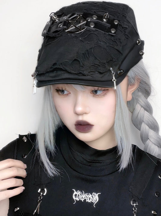 Sweet Cool Rivet Ribbon Narrow Brim Hat
