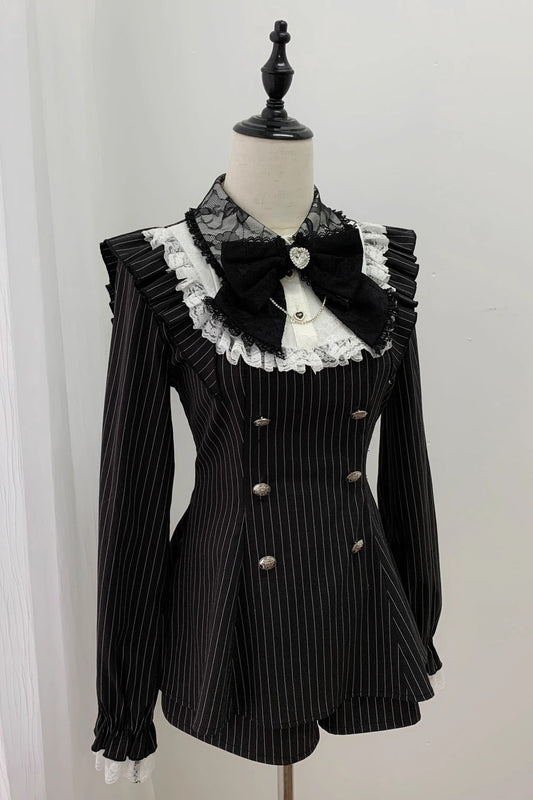 【12月15日予約締切】ダークゴシックレースダブルブレストストライプスーツセット+ヘアアクセサリー