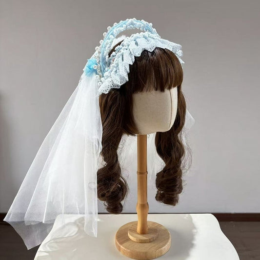 Snow Rabbit Ball Series: Bonnet with rabbit ears + crown veil + accessories