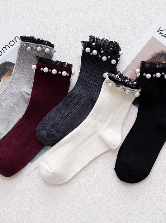 pearl tulle short rib socks