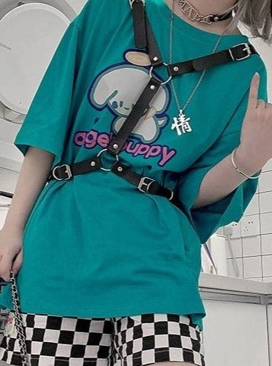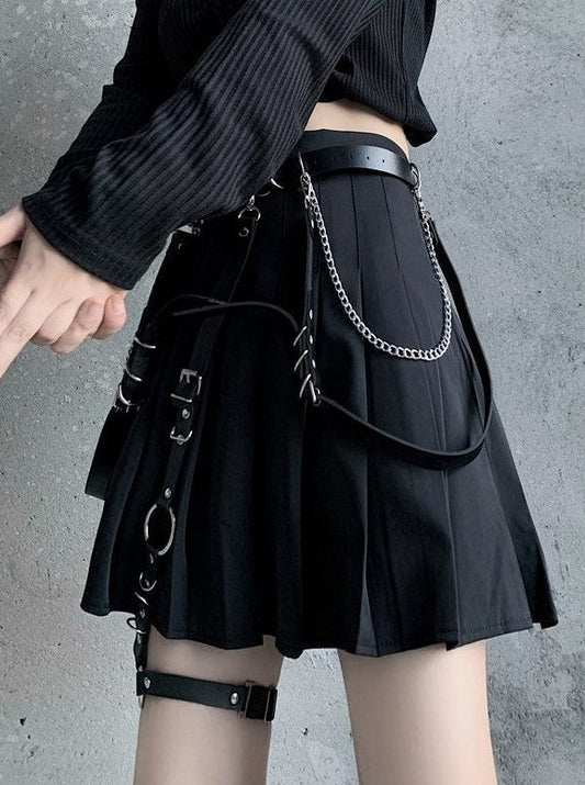 Chain strap leather belt + ring leg strap