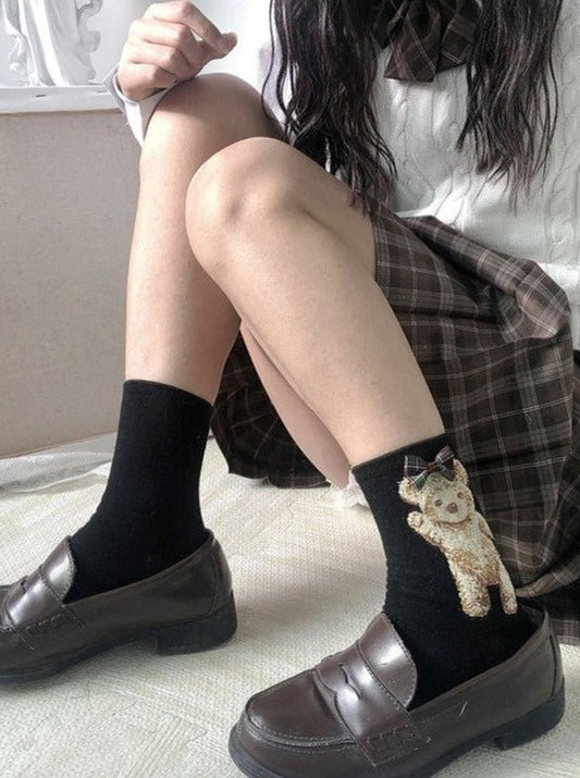 scalloped ribbon brooch socks