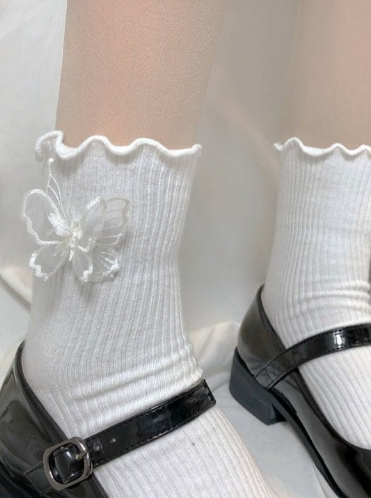 top ruffle butterfly rib socks