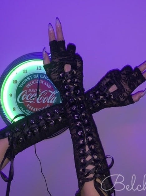 lace up fingerless gloves