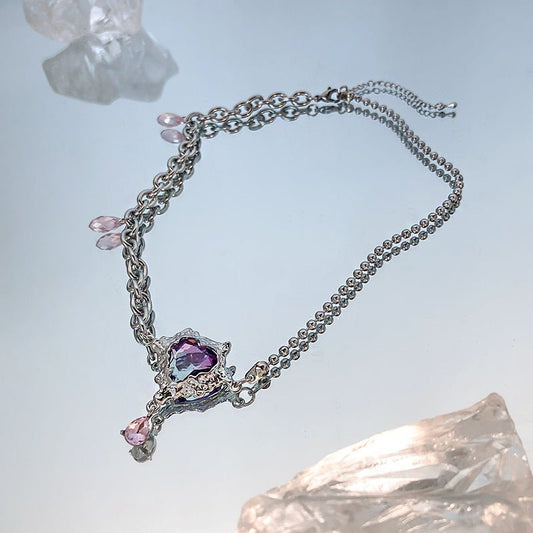 Design heart drop jewel asymmetric chain necklace