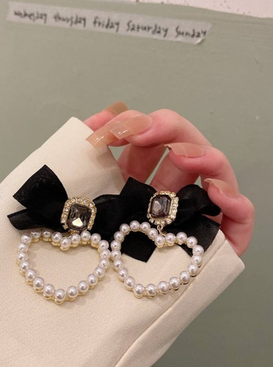 heart pearl bijou ribbon earrings