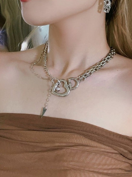 heart asymmetric chain choker necklace