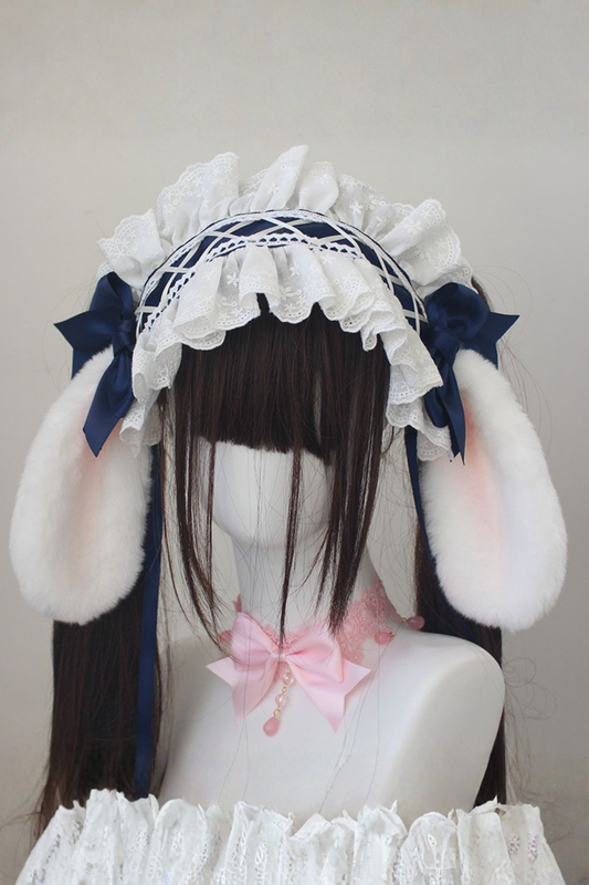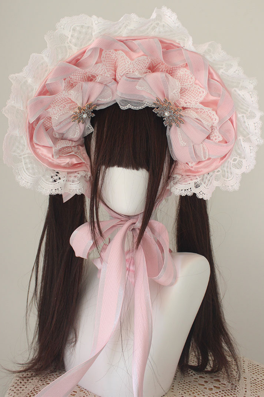 レースロリータボネットハット+カチューシャ+スリーブ+ピン+ハット+ベール