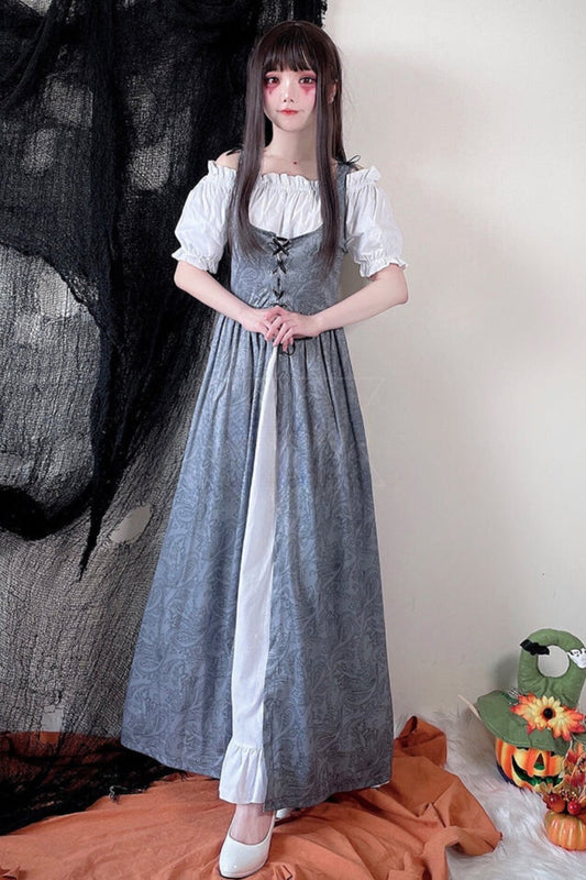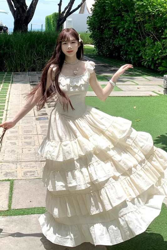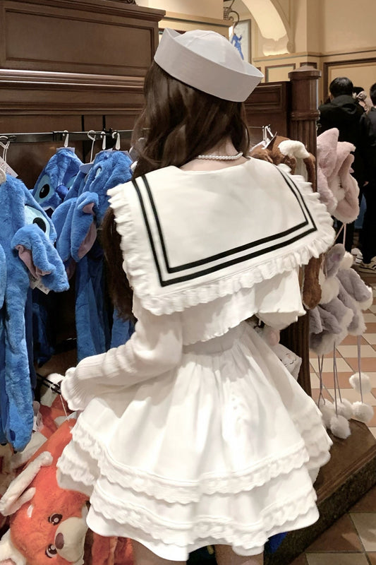 Pure White Sweet Long One Piece + Surprising Ribbon + Hair Band