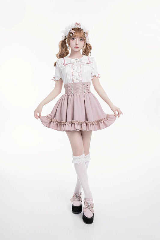 Bowan Shoulder Knit Tops + Pleated Skirt + Ribbon Cake Skirt