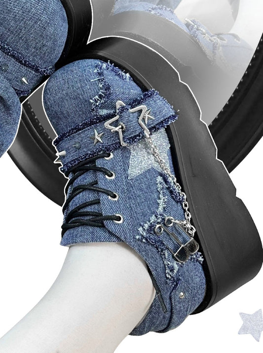 Denim Dark Thick Soled Shoes