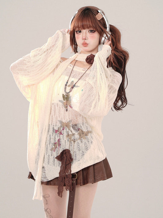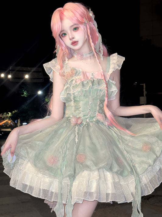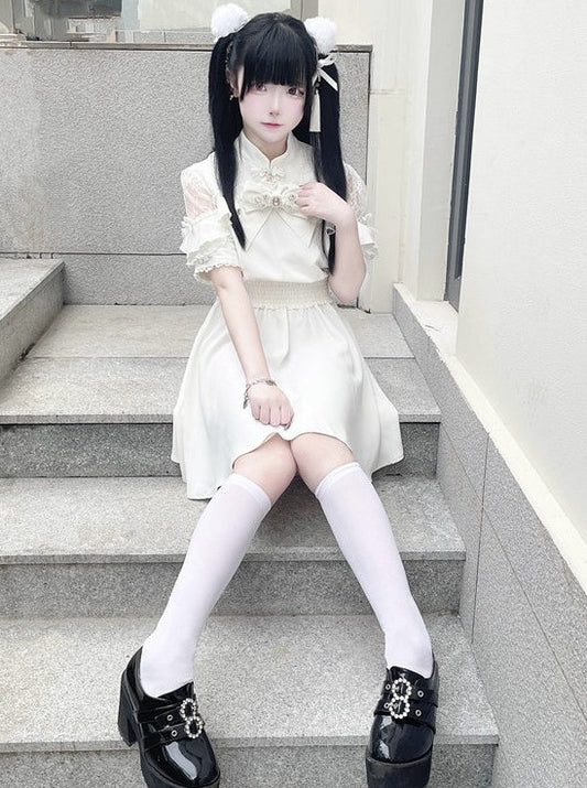 Lace Vestment Cardigan Suspender Dress