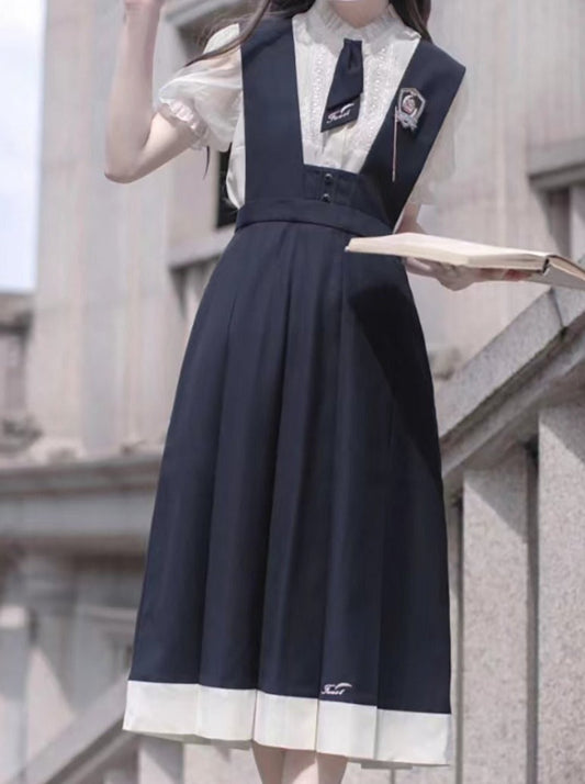[Reserved Item] Retro Summer Dress + Puff Sleeve Shirt + Tie + Badge