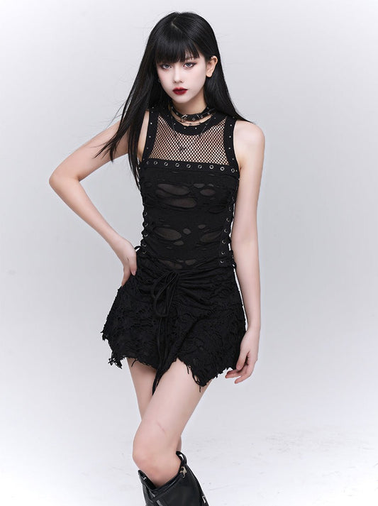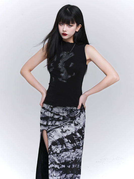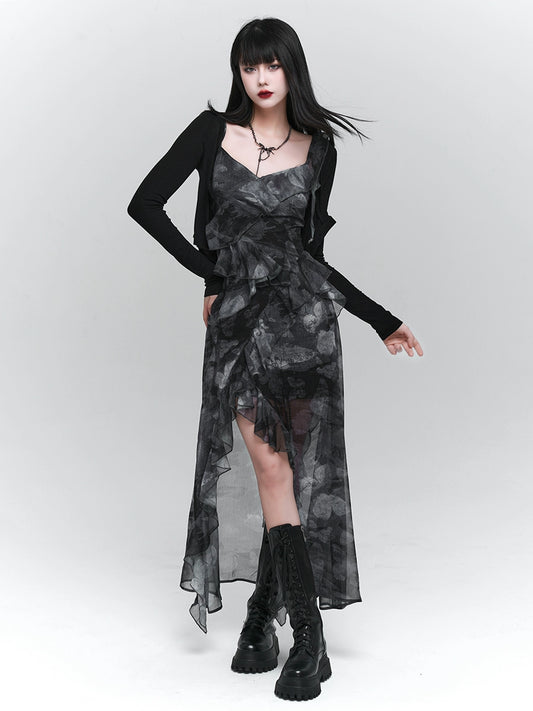 Retro Flower Faux Faux Two Piece Fishbone Dress