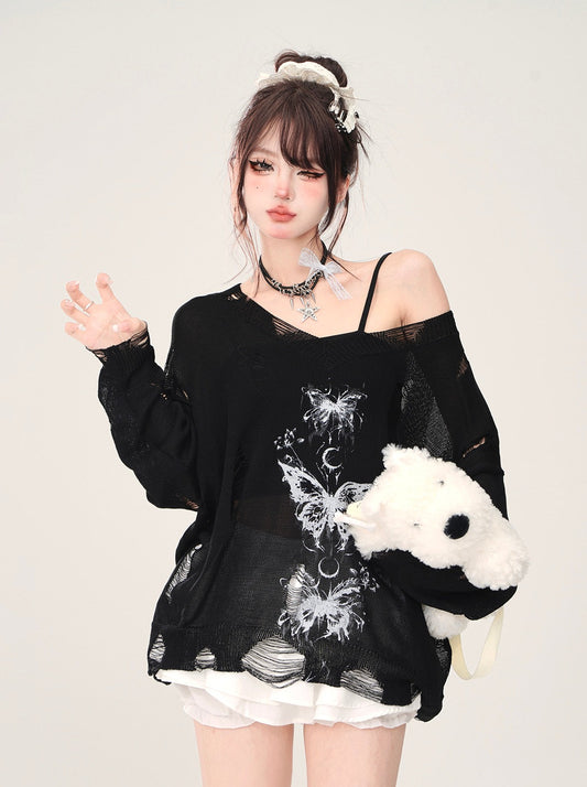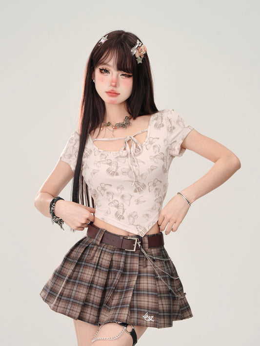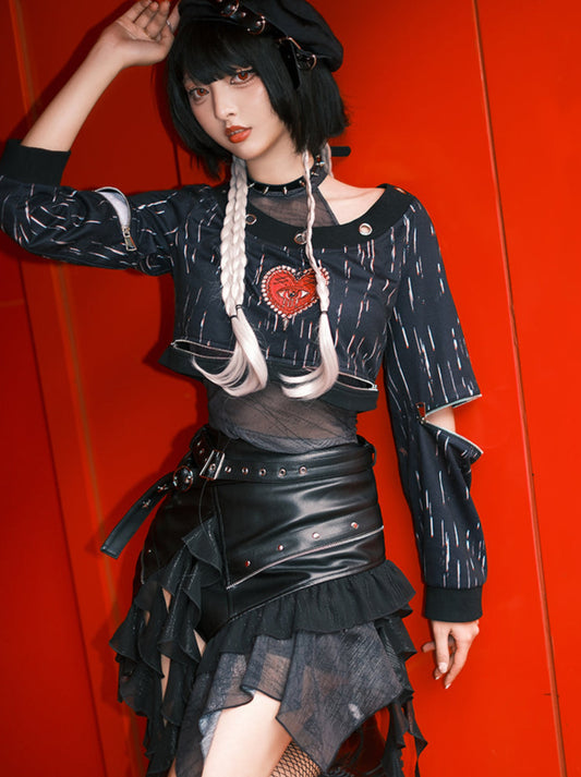 Punk dark heart short sweatshirt + inner top + skirt + hat + necklace
