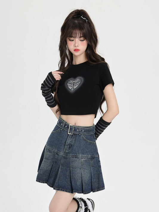 American Love Print Short T-Shirt + Sleeve