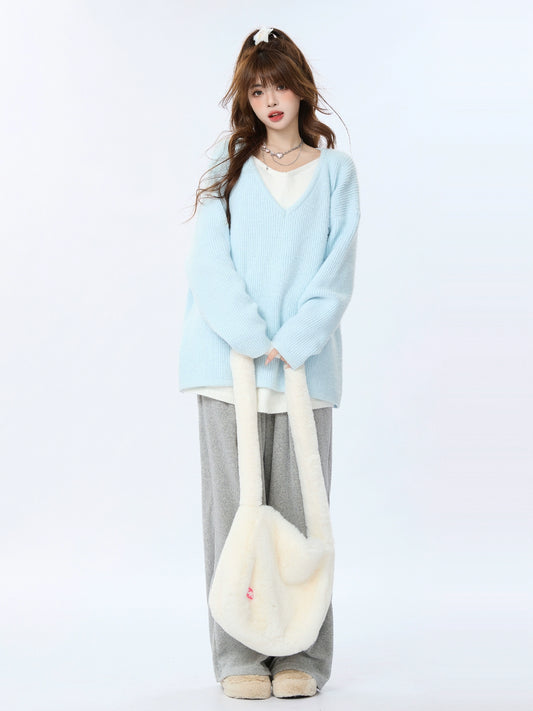 Milk Blue Bunny Hooded Loose Hoodie