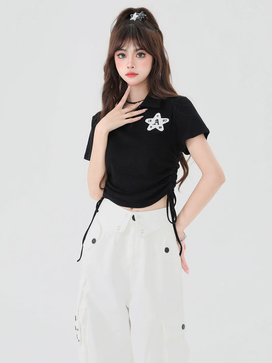 Lace-up Button Waist Top