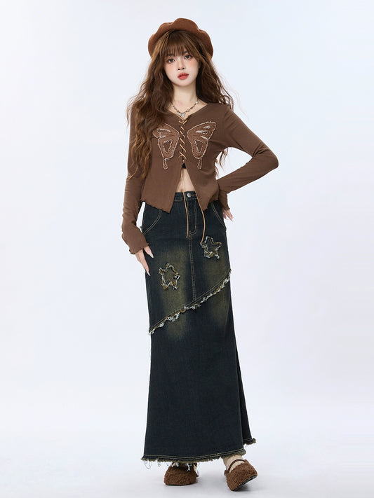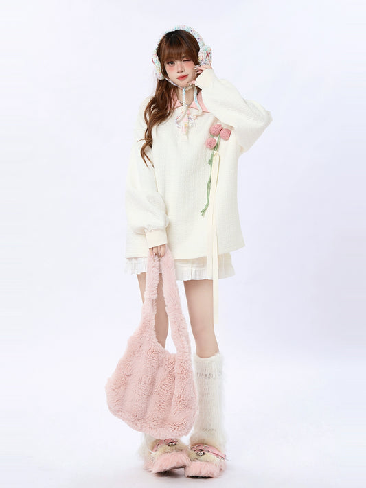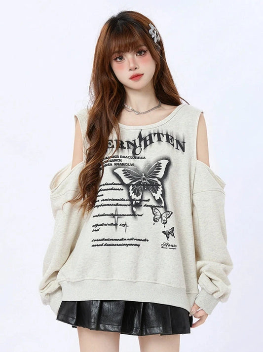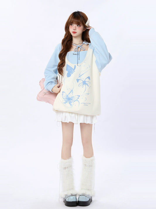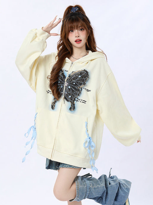 Butterfly Ribbon Hooded Sweatshirt Loose Jacket