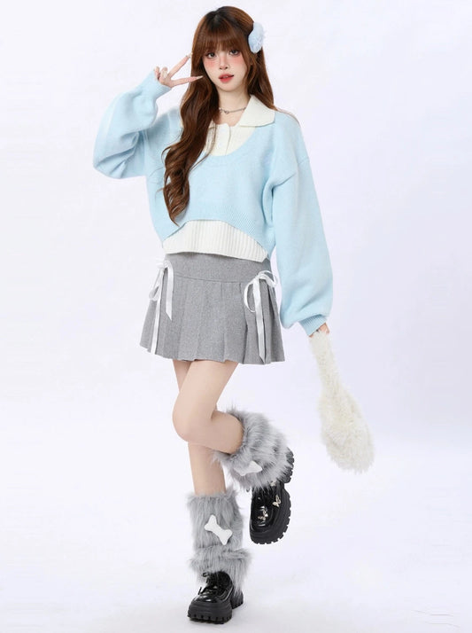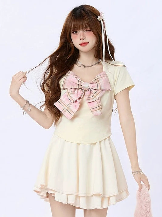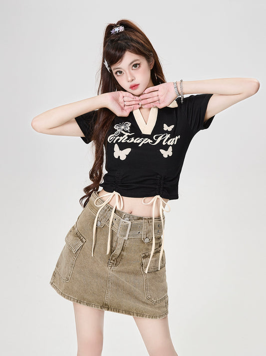 V-Neck Polo Collar Butterfly Low String Bow Short Top