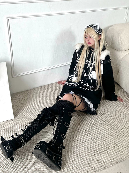 Letter Print Dark Student Spider Hooded Letter Hoodie